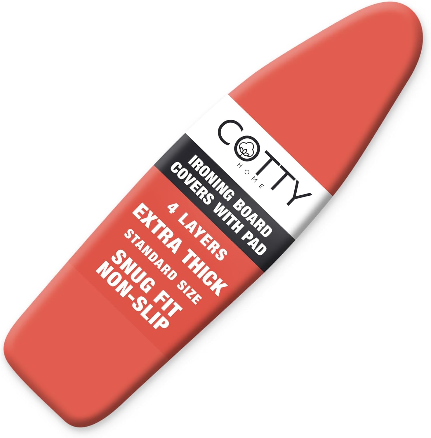 - EXTRA THICK PADDING : This ironing board cover made by extra thick padding. Consists 6 multiple layers that 2 lamination and 4 main layer occured that heat reflective layer, thick cotton fabric, thick felt, thick sponge. That's why no need to use extra replacements pad.