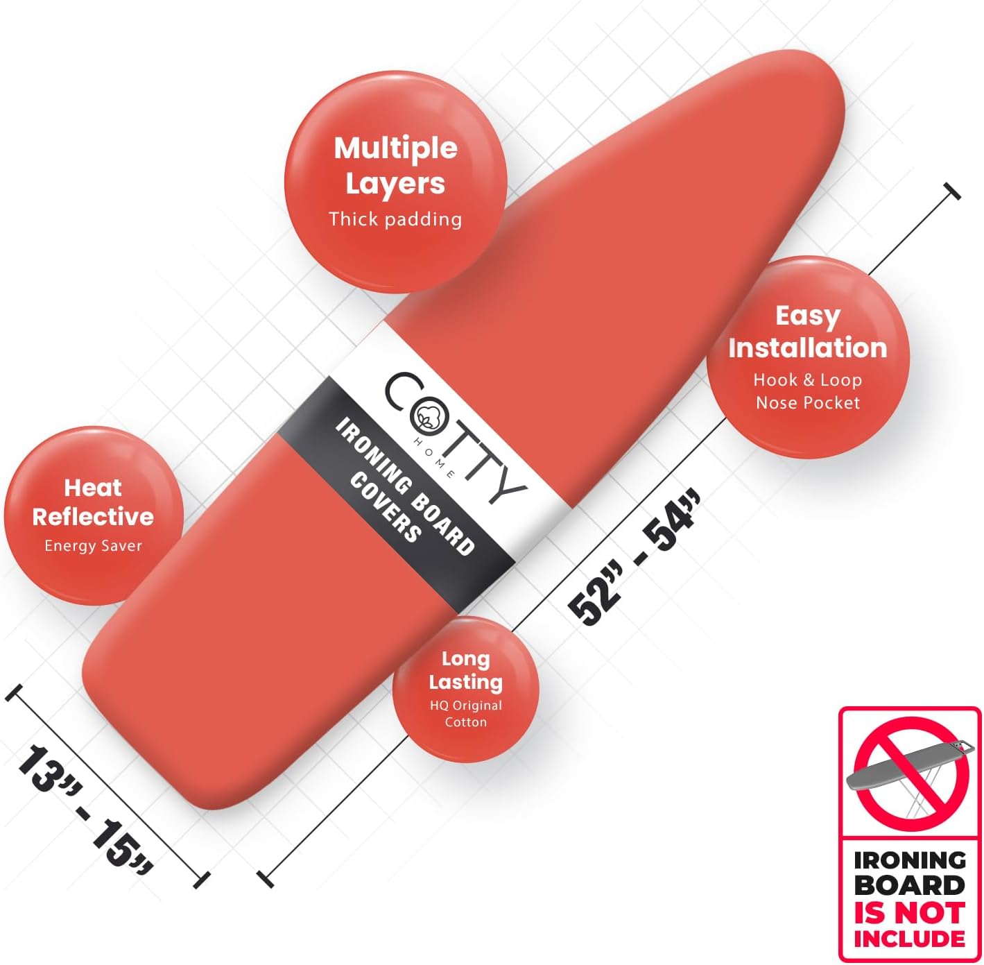 - EASY & QUICK IRONING : Accelerate and make simple your ironing process with our innovative ironing board cover. Heat reflective coated that reflects heat rather than absorbing it, this ironing board cover ensures faster and more effective ironing. Also the cover remains securely in place during use, thus you can finish your work more effortlessly.