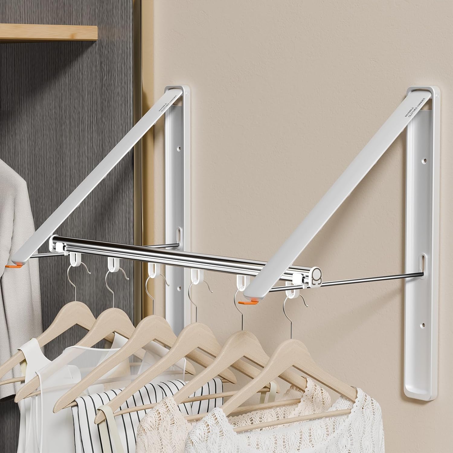 - Install in No Time: All you have to do is place the guide onto the wall, drill your holes, put in the anchors, and install the screws. Once the two foldable clothing racks are secured, add the extended rod. Then you can start airing the clothes