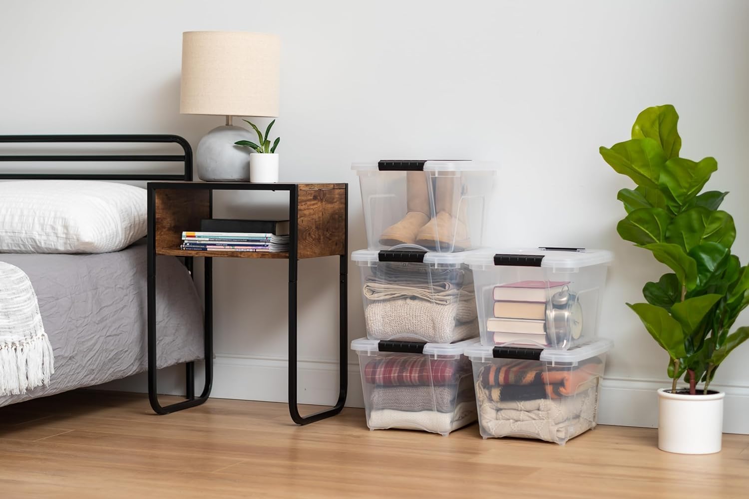 - STACKABLE STORAGE: Maximize space in your home, office, or playroom. The securely locking lid keeps items safe and allows bins to be stacked on top of each other.