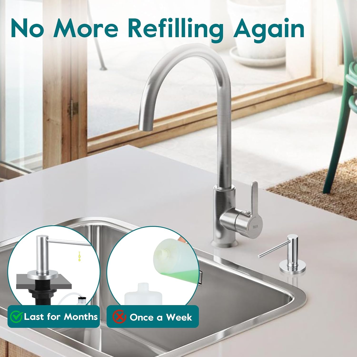 - Material: Our soap dispenser for kitchen sink is made of commercial grade 304 stainless steel, its finish makes it resistant to corrosion and rust