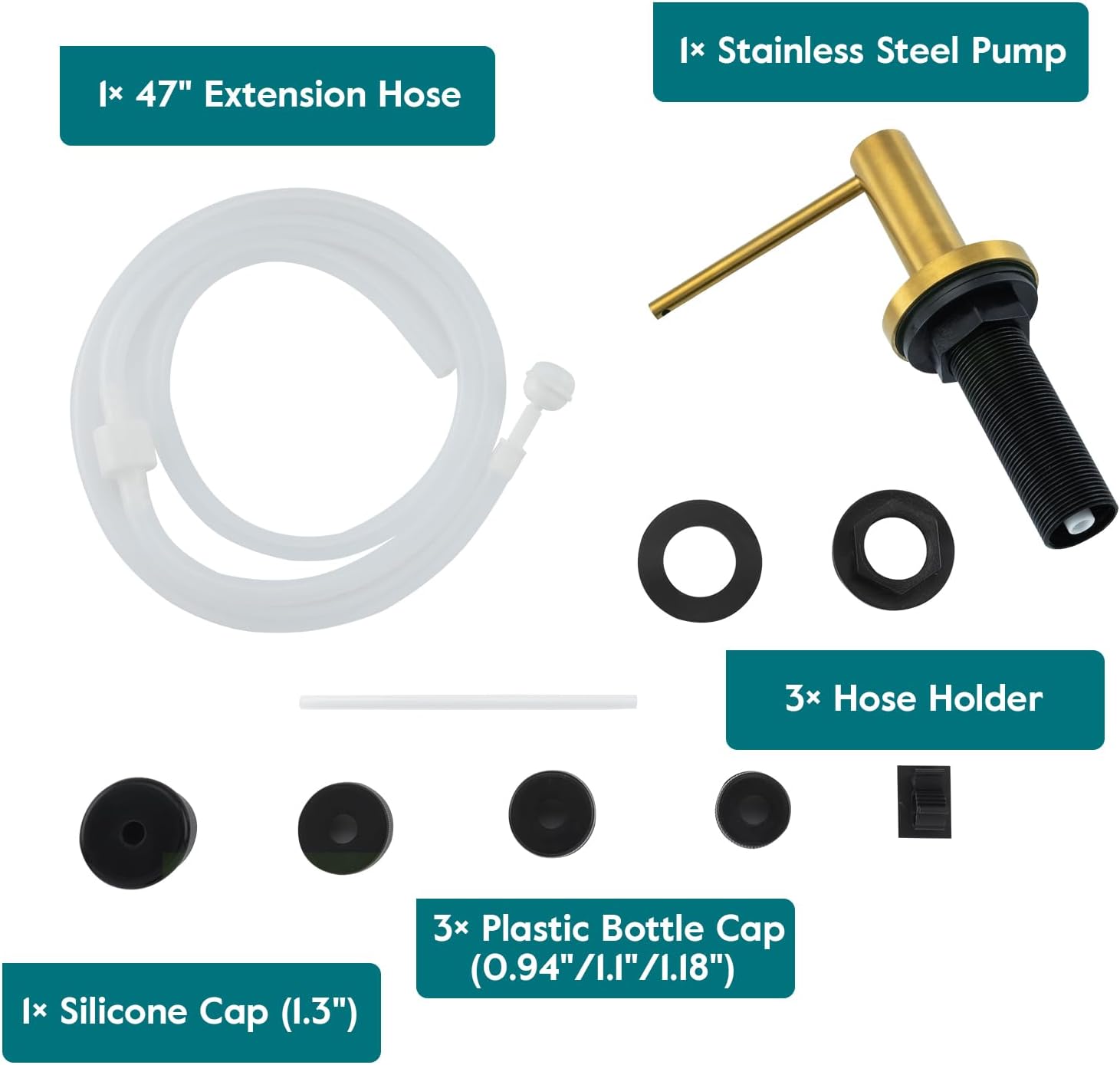 - No More Messy Refills: Our sink soap dispenser pump is equipped with a 47" extension tube, you can insert the tube directly into the large dish soap dispenser. No need to refill small canisters anymore