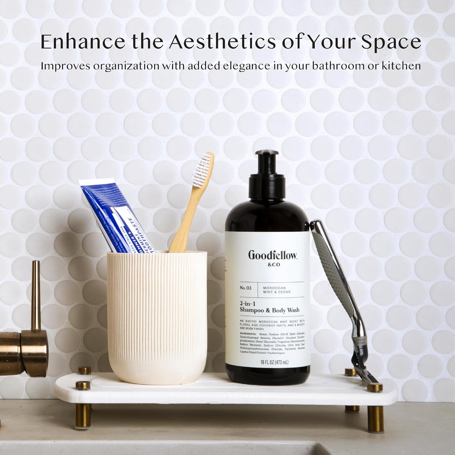 - Perfect Gift for Holidays and More – Its elegant white tray with gold tone legs and functional quick-dry surface make this organizer a thoughtful choice for Christmas, Thanksgiving, housewarmings, weddings, or bridal showers—ideal for anyone who enjoys a neat and stylish kitchen or bathroom