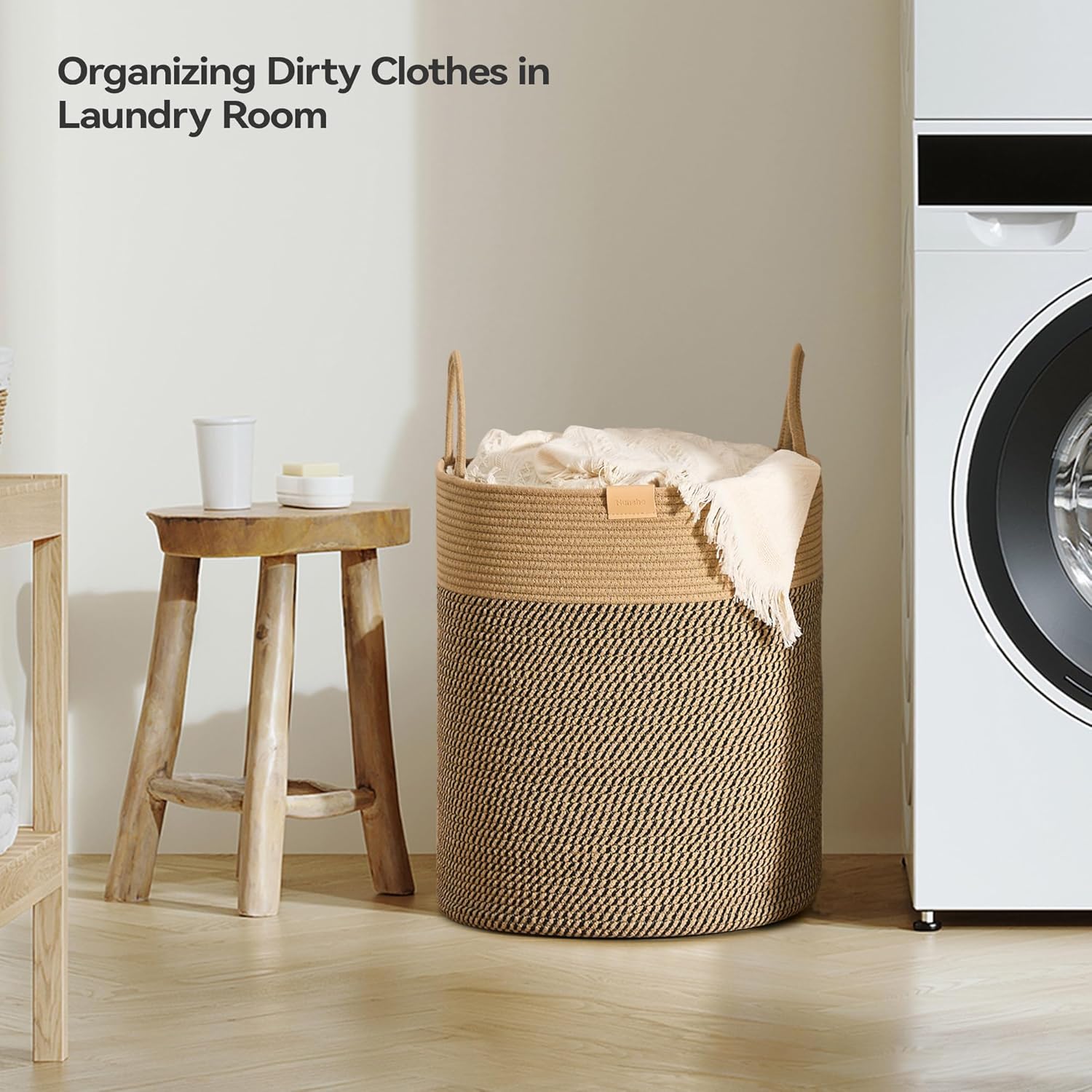 80L Laundry Hamper Basket,Baby Nursery Woven Storage Basket for Toys Bin,Pillows,Blankets,Clothes,Dark&Brown