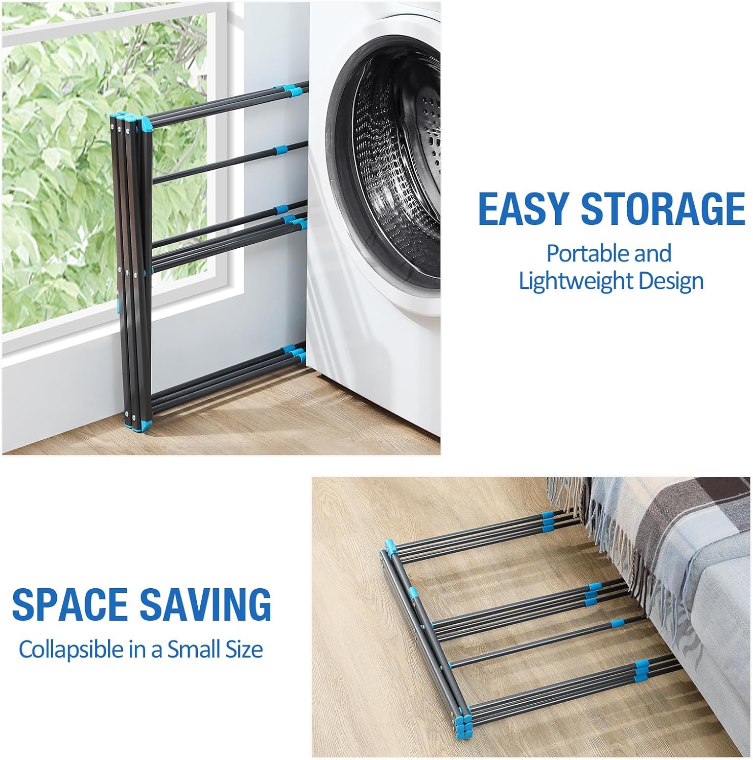 - Expandable Design: The 3-tier laundry drying rack features 11 steel drying rods that can be extended from 17.13 to 29.33 inches in length, providing ample drying space for towels, clothes, sweaters, and more.