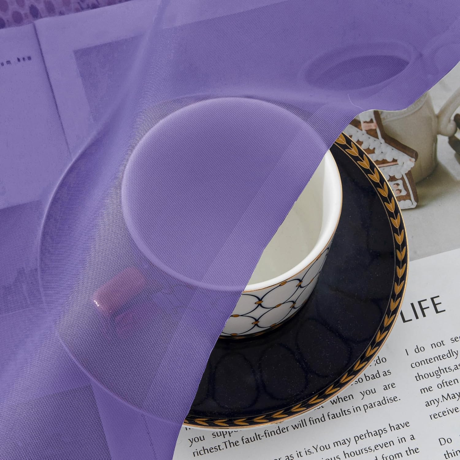 Chyhomenyc Sheer Purple Tier Curtains 24 Inch Length, Small Window Curtains Treatment for Bathroom Living Room Basement, Short Rod Pocket Cafe Curtain, 42W x 24L Inches, 2 Panels