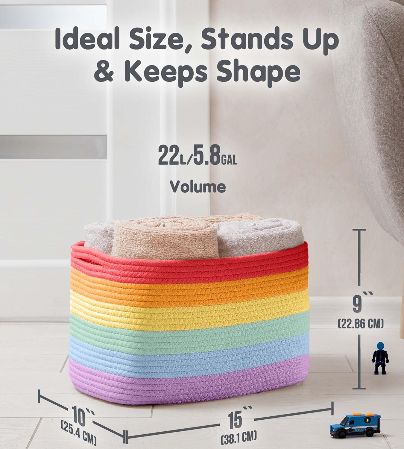- TOY RAINBOW STORAGE Bin with Handles: Ideal for holding kid's items, our small rope basket offers practicality and style making it a good pick basket!