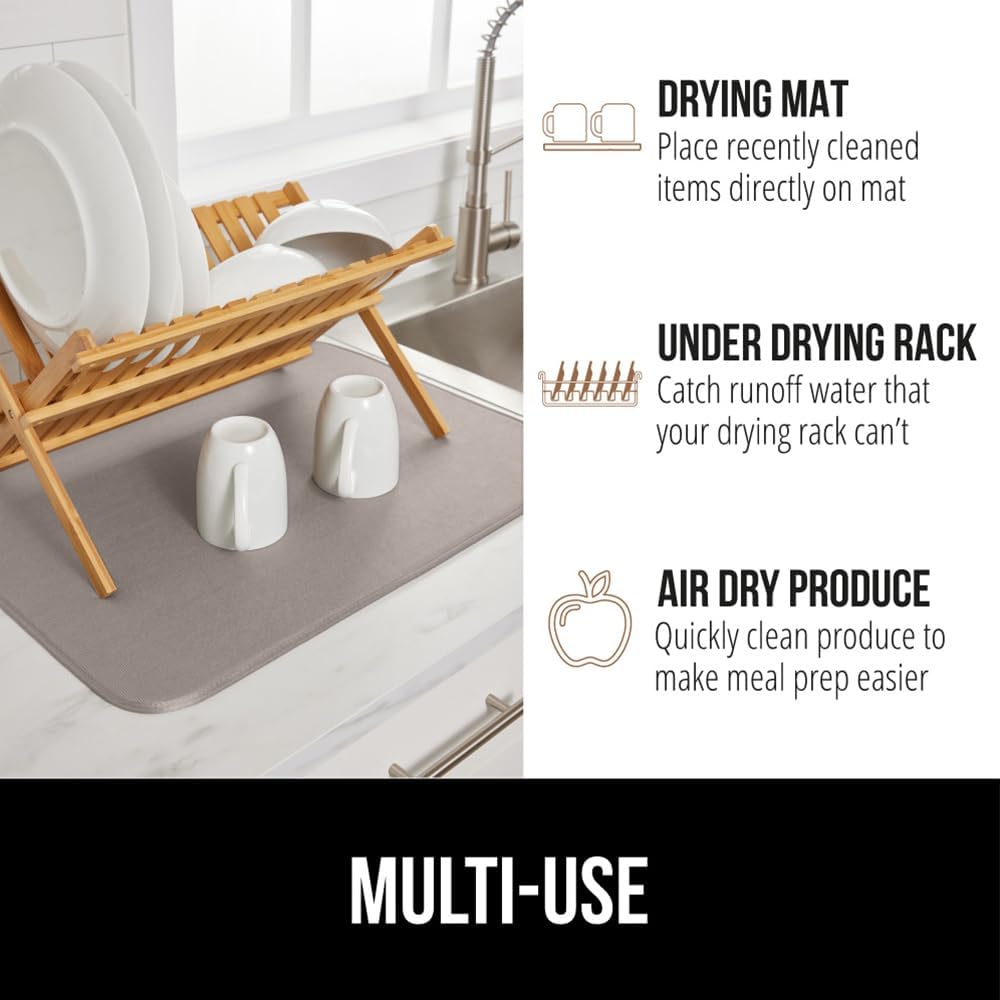 GORILLA GRIP Ultra Water Absorbent Microfiber Dish Drying Mat, 18x24, Quick Dry Thick Mesh, Slip Resistant Pad for Sink Dishes or Under Rack, Kitchen Counter Accessories, Machine Wash Mats, Almond
