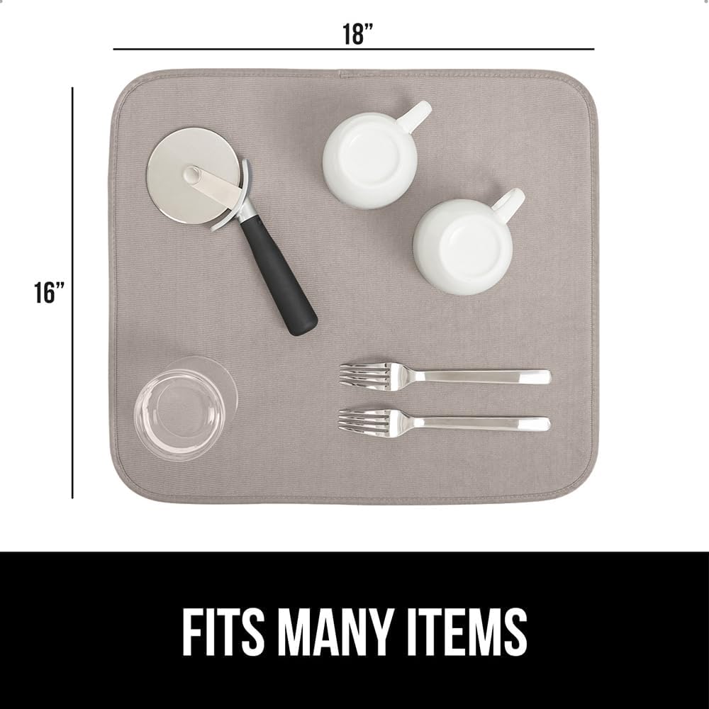 GORILLA GRIP Ultra Water Absorbent Microfiber Dish Drying Mat, Quick Dry Thick Mesh, Slip Resistant Pad for Sink Dishes or Under Rack, Kitchen Counter Accessories, 16x18, Machine Wash Mats, Almond