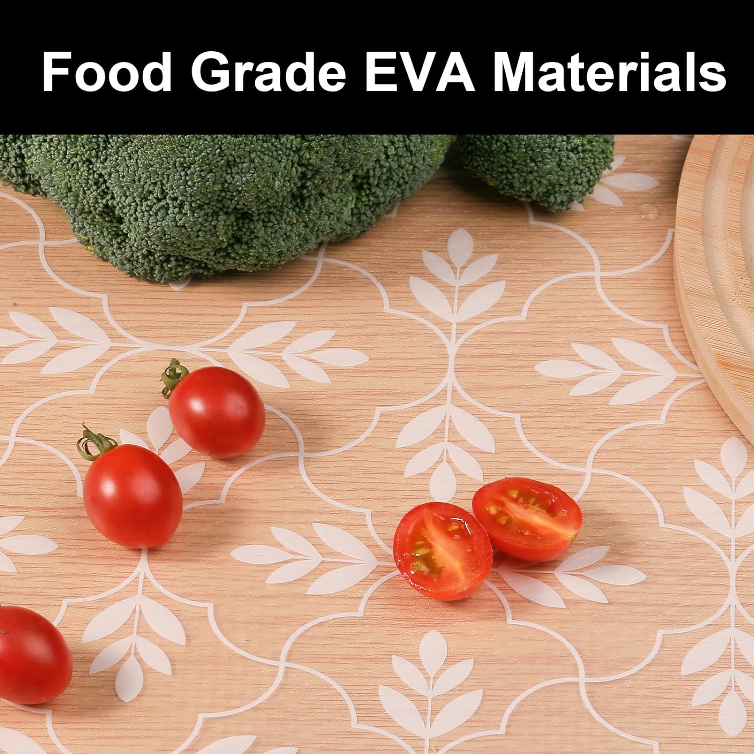 - PREMIUM SHELF LINER: The cabinet liners for shelves is made of a safe food-grade EVA material. The shelf liners can directly contact fruits and vegetables, as well as protect shelves, drawers, cabinets and refrigerators from scratching.It also has an anti-slip effect to protect the contents inside from collision and damage.