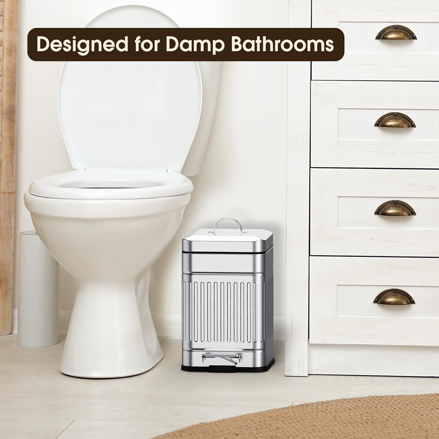 - Silent Soft Close: The step trash can has a damper arrangement that retards the close of allows the lid to close quietly and safely by itself every time, don’t worry about disturbing the rest of your family