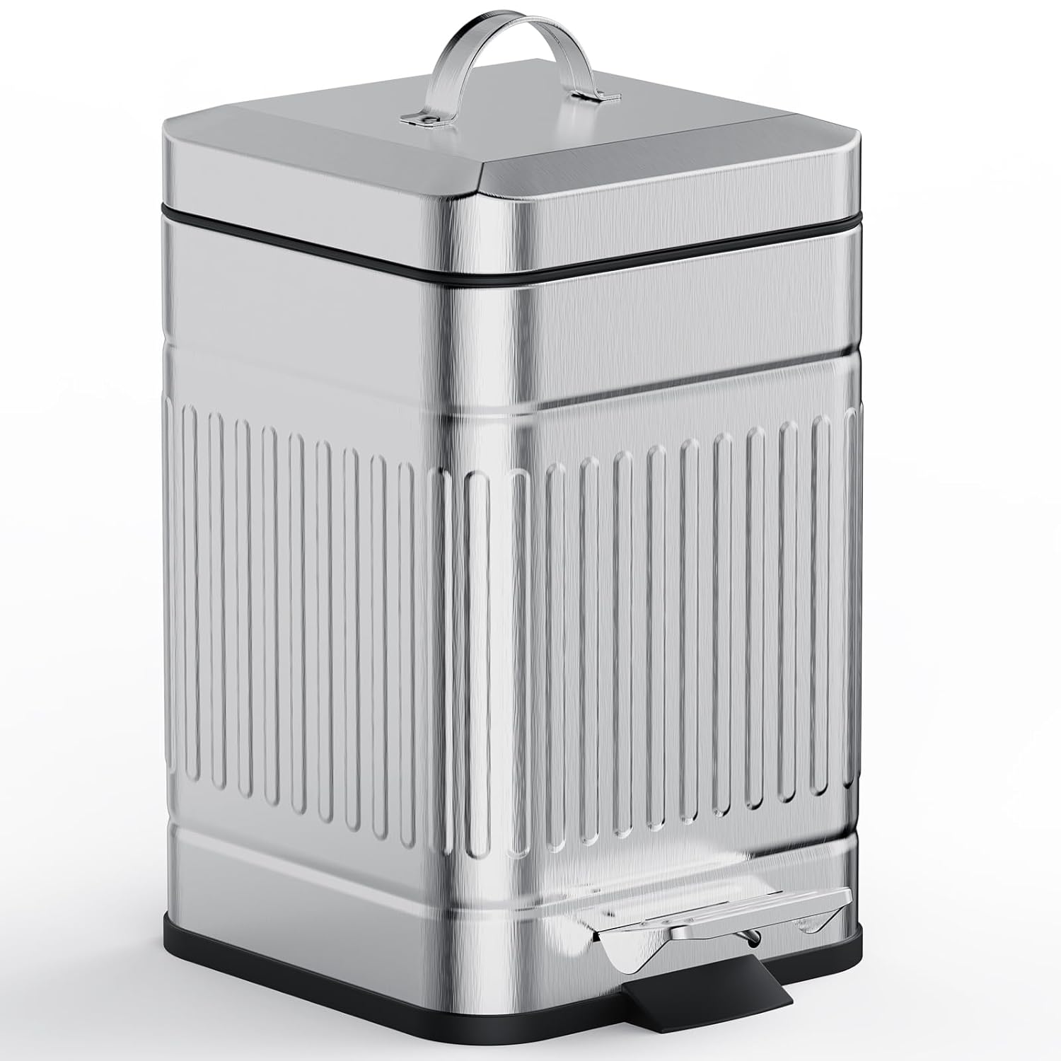 CEROELDA Small Trash Can with Lid-5L/1.3 Gal,Outdoor Dog Poop Garbage Can-Farmhouse Retro Metal Waste Bin w/Step Pedal for Bathroom Bedroom Office-Soft Close-Galvanized Steel…