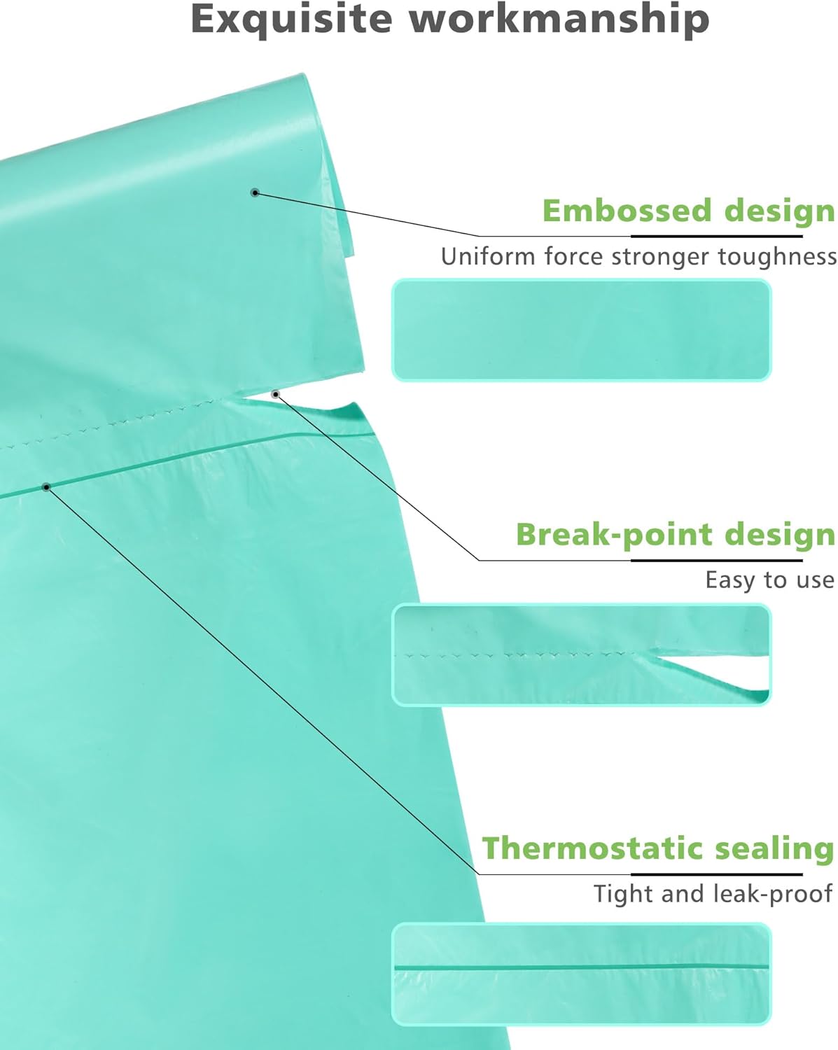 - 【Upgraded Tear Line Experience】- We've introduced an upgraded version of perforated tear lines with a unique design, allowing for denser perforations. Easily tear the small compost bags without compromising their integrity, providing a refined and comforting experience each time you handle biodegradable food waste bags.