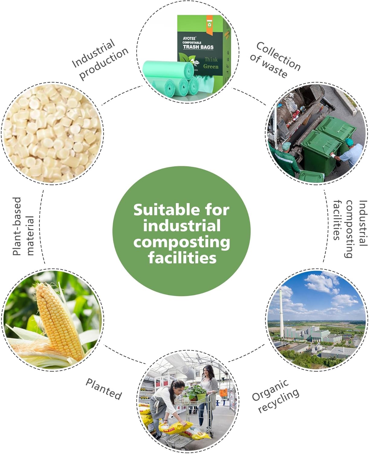 - 【Eco-Friendly】- Our kitchen compost bags are primarily made from plant starch extract (PSM), complying with ASTM D 6400 and EN13432 compostable certification standards. 3 gallon trash bags not suitable for backyard composting, they swiftly degrade in municipal industrial composting facilities (maintained at a constant 50-60℃), mitigating environmental harm.