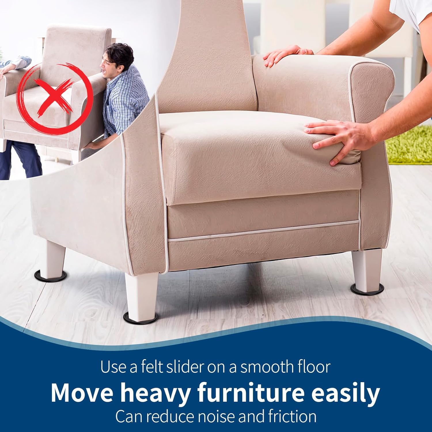 - 【Easy to Slide】Felt furniture sliders for hardwood floors protect your hardwood floors from scratches, move your furniture easily and safely! Reusable furniture movers sliders can help you move heavy item with effortless! Reduce Noise and Friction!