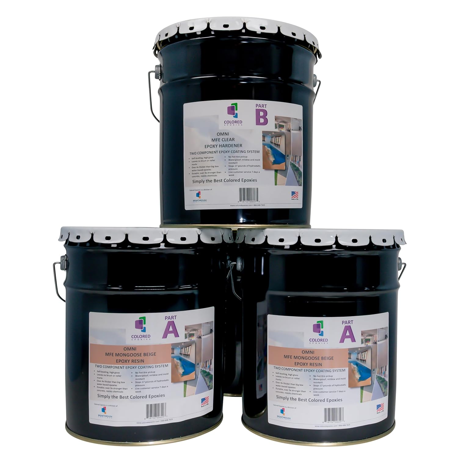 Colored Epoxies Mongoose Beige Epoxy Resin Coating Made with Beautiful and Vibrant Pigments, 100% Solids, for Garage Floors, Basements, Concrete and Plywood. 15 Gallon