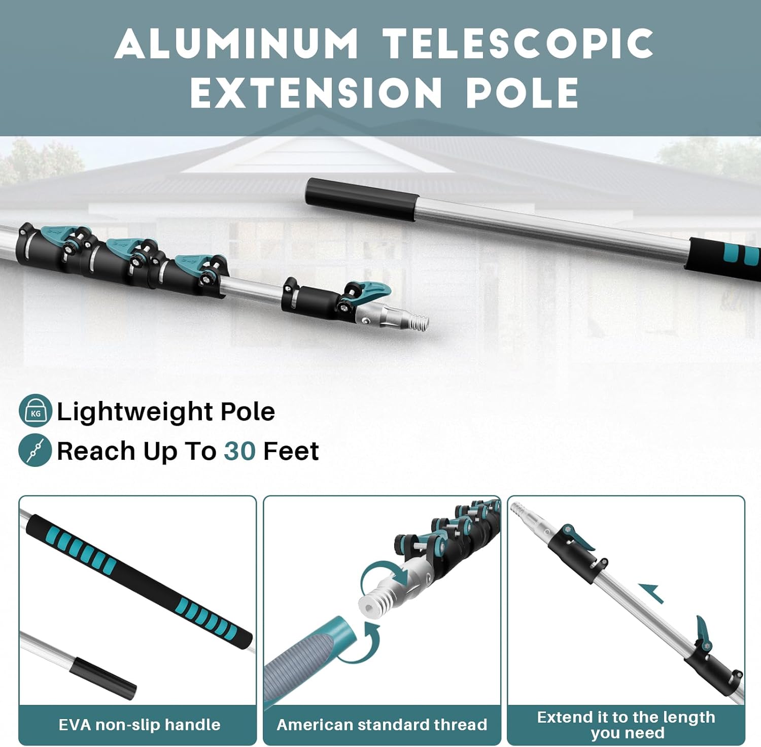 - Comprehensive Cleaning Kit: Our Cleaning Kit offers everything you need for a thorough clean. Featuring an Extendable Duster (adjustable from 7FT to 30FT), Cobweb Duster with Extension Pole, and more, it ensures no corner or high ceiling remains untouched. From dusting ceiling fan blades to reaching tight spots, our kit provides versatile solutions for all your cleaning needs.