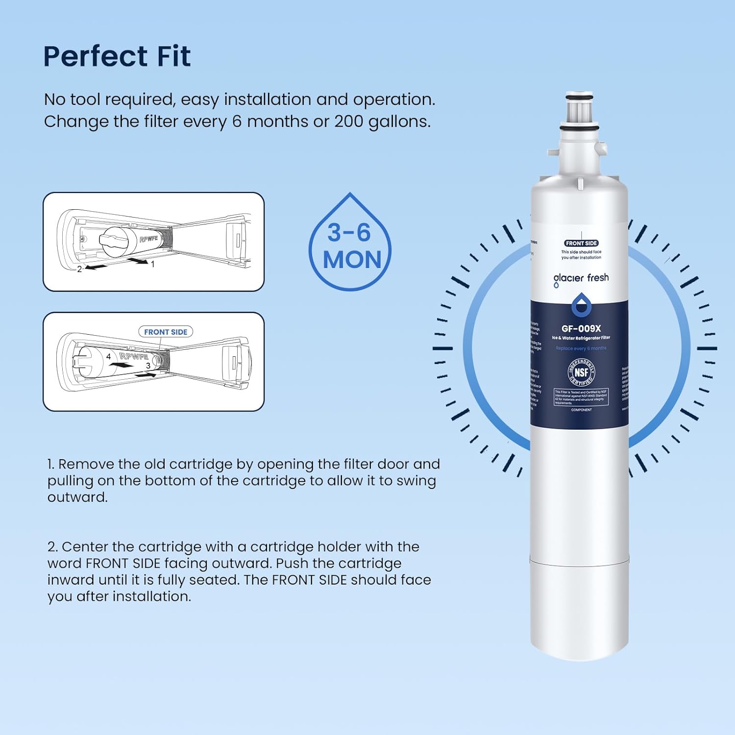 - GLACIER FRESH Replacement for RPWFE Refrigerator Water Filter (with CHIP) Statement: Tested & verified by independent laboratory testing, it can remove chemicals and contaminants from your drinking water, resulting in clean tasting and clean smelling water.