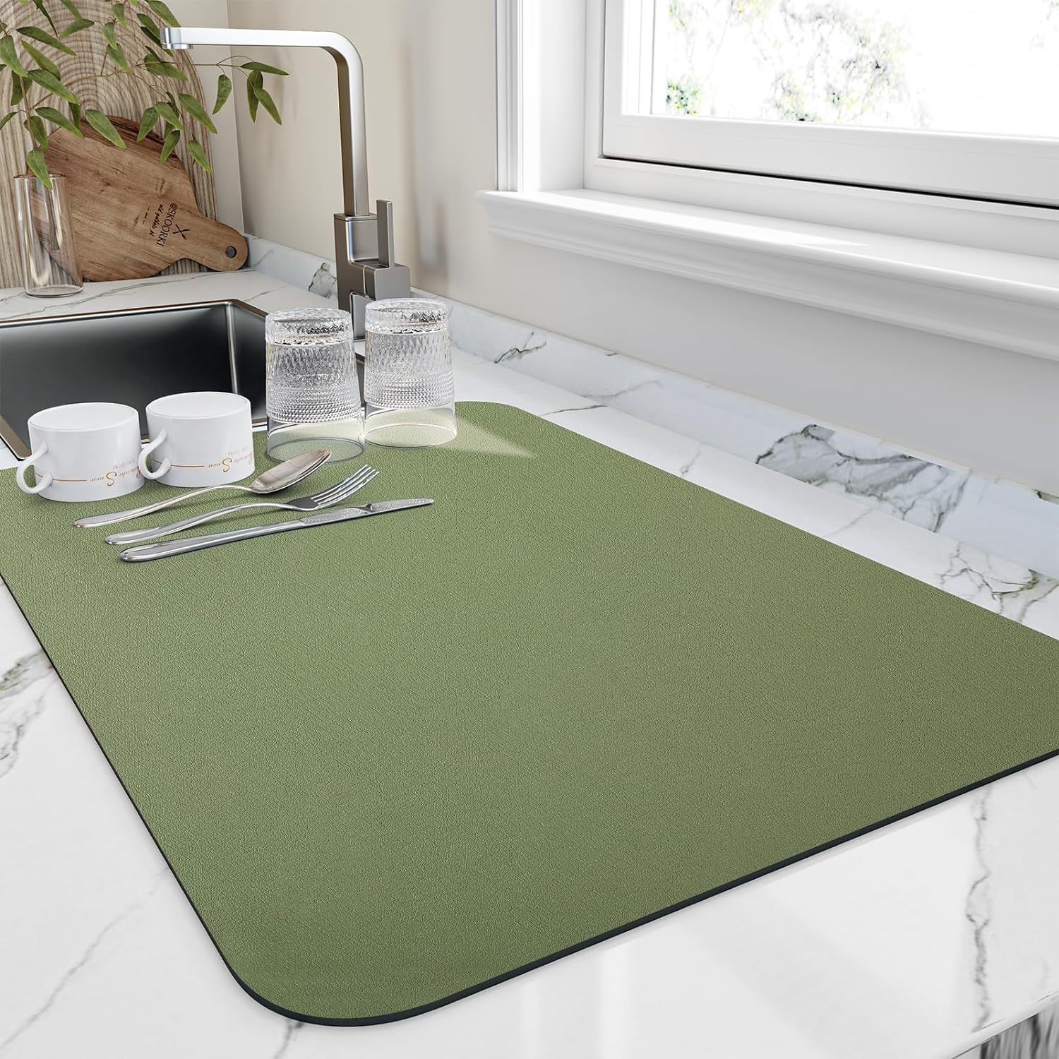 Dish Drying Mat for Kitchen Counter, Heat Resistant Drainer Mats with Non-slip Rubber Backed, Hide Stain Kitchen Super Absorbent Draining Mat, Easy to Clean Dish Rack Pad, Green 18"x28"