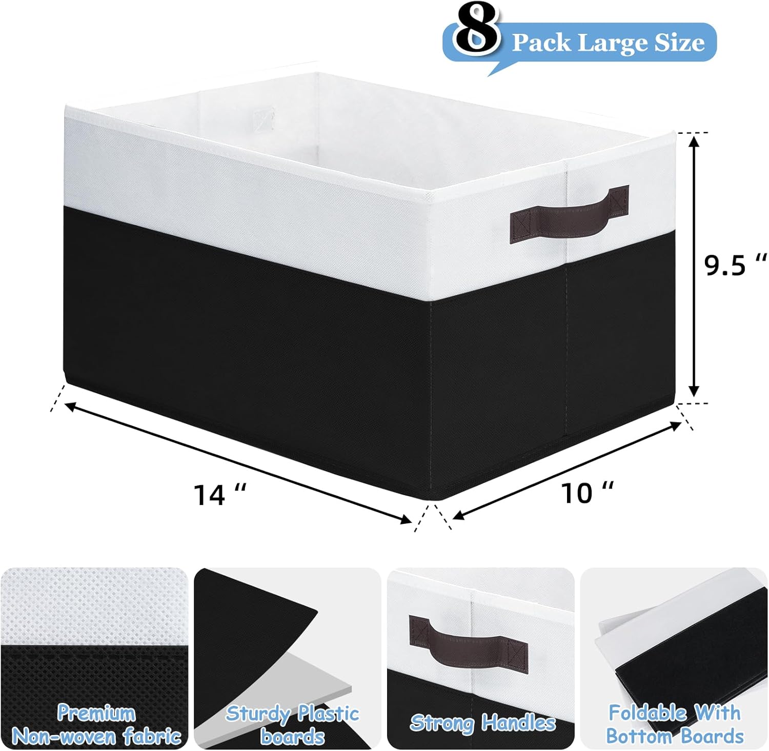 - 【FIT RANGE】 Comes with 8 pack for better value, these cloth storage bins could meet all your family storage needs, also for college dorm, RV, school, baby nursery. Measuring 14” (L) x 10” (W) x 9.5” (H), they could work as storage baskets for shelves, closet storage bins, shelf bins, under bed storage bins, or for changing tables.