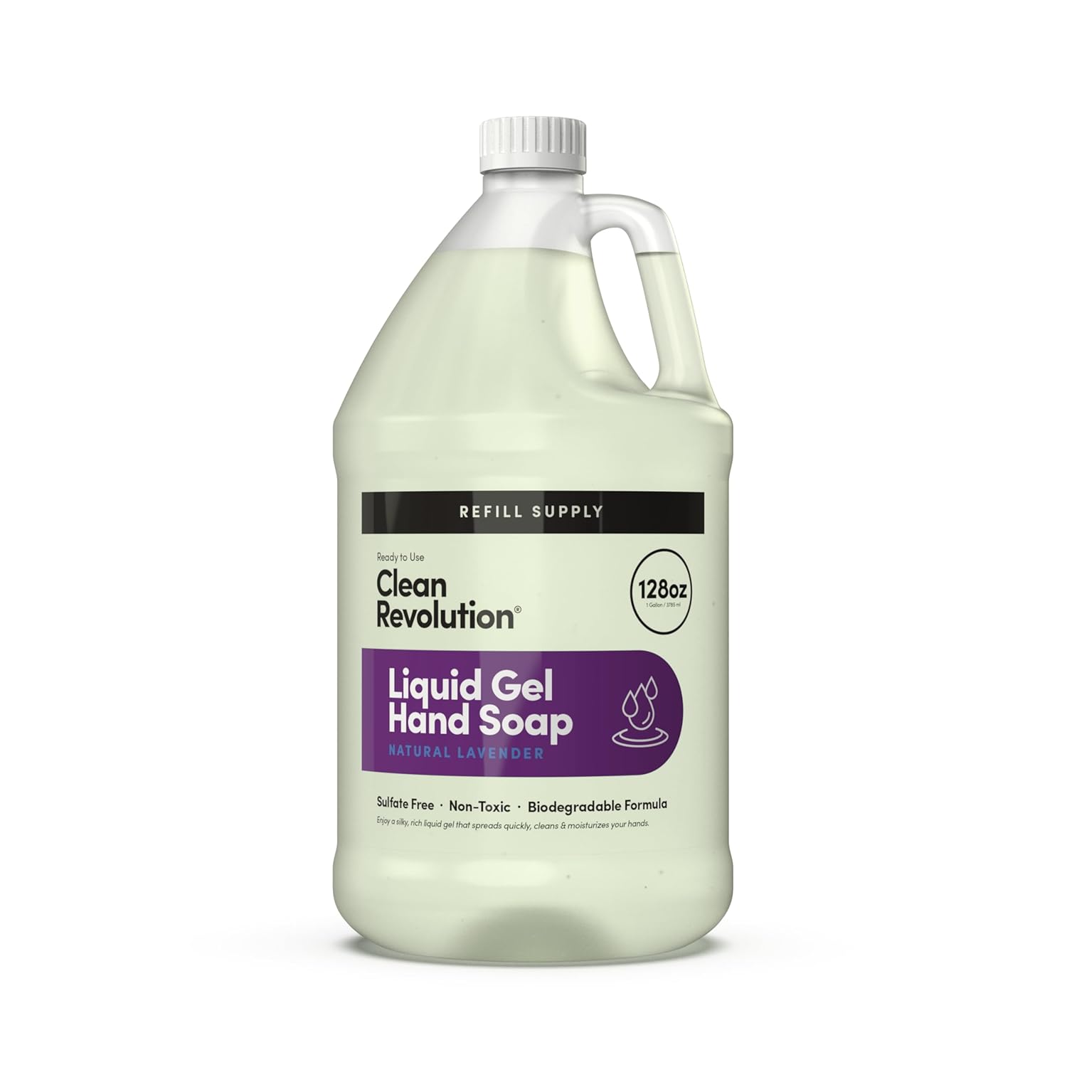 Clean Revolution Liquid Gel Hand Soap, Silky Rich Liquid, Quick Lather, Fast Rinsing, Contains Real Essential Oils (Natural Lavender) 128 Fl Oz