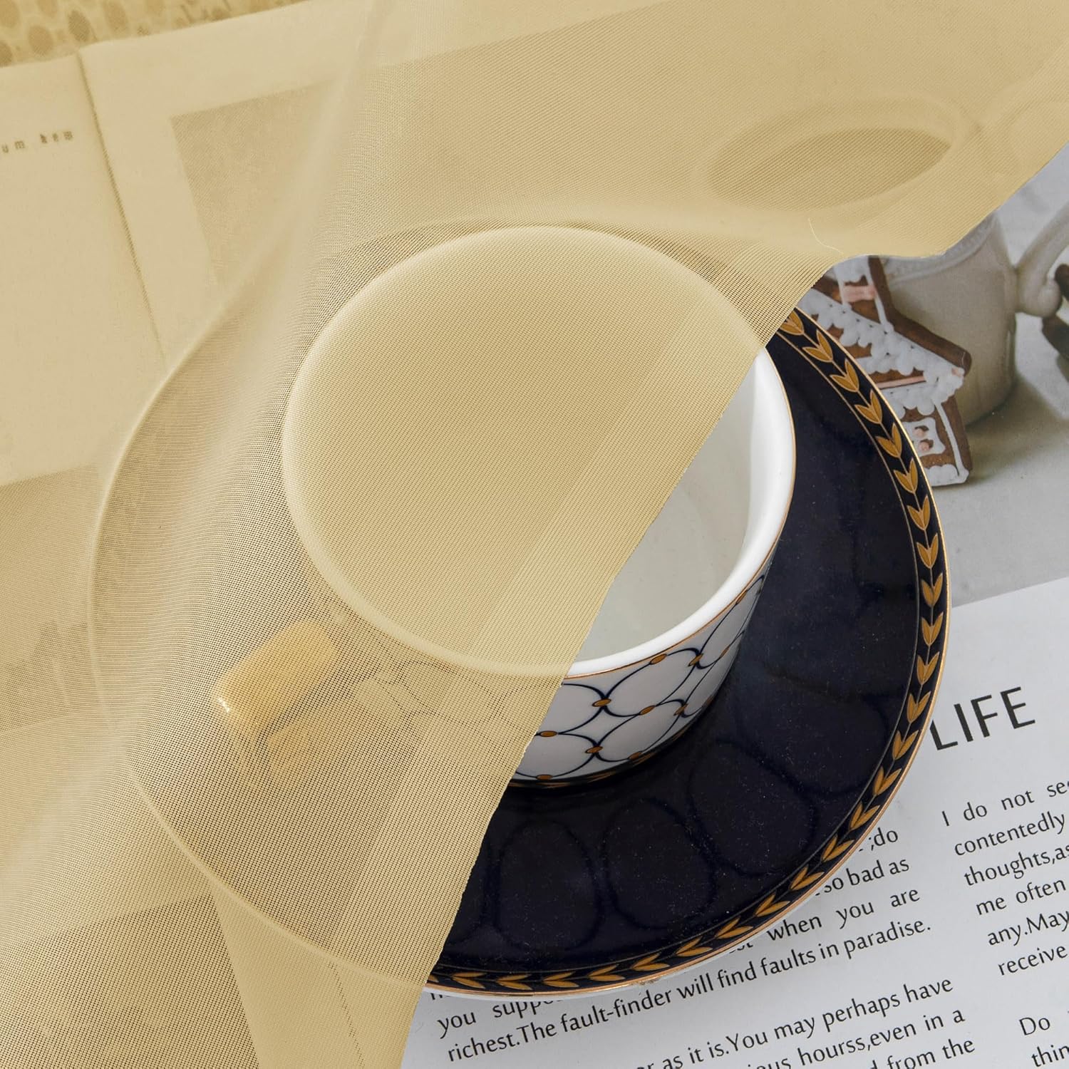Chyhomenyc Sheer Gold Kitchen Tier Curtains 24 Inch Length Set, Small Window Curtains Treatment for Bathroom/Living Room/Cafe/Basement, Short Voile Curtain Tiers 42in x 24in, Rod Pocket, 2 PCS