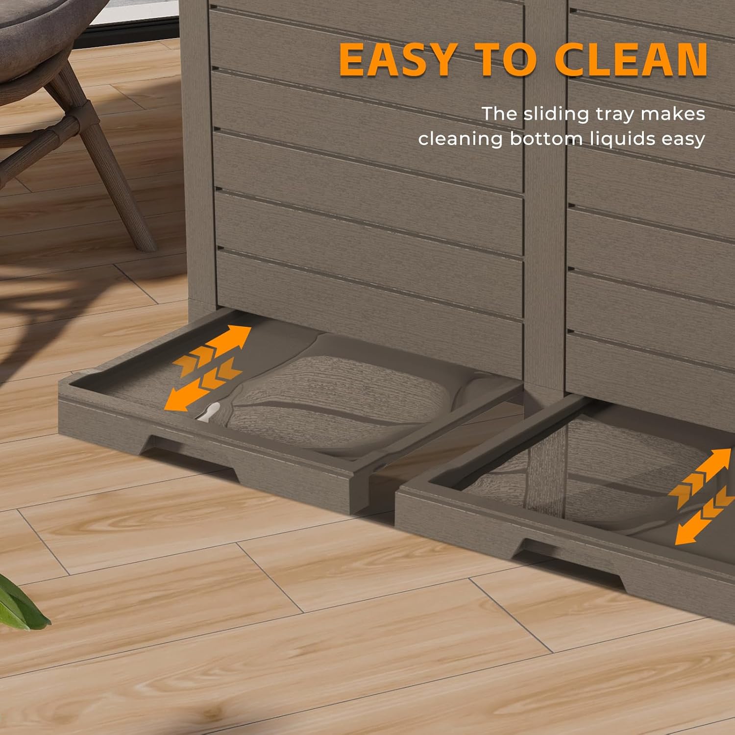 - Durable and Waterproof Material: Made from durable, recyclable resin, this outdoor trashcan is waterproof and fade-resistant. The sturdy panels are resistant to bending, warping, or breaking, providing excellent weather resistance to withstand various weather conditions.