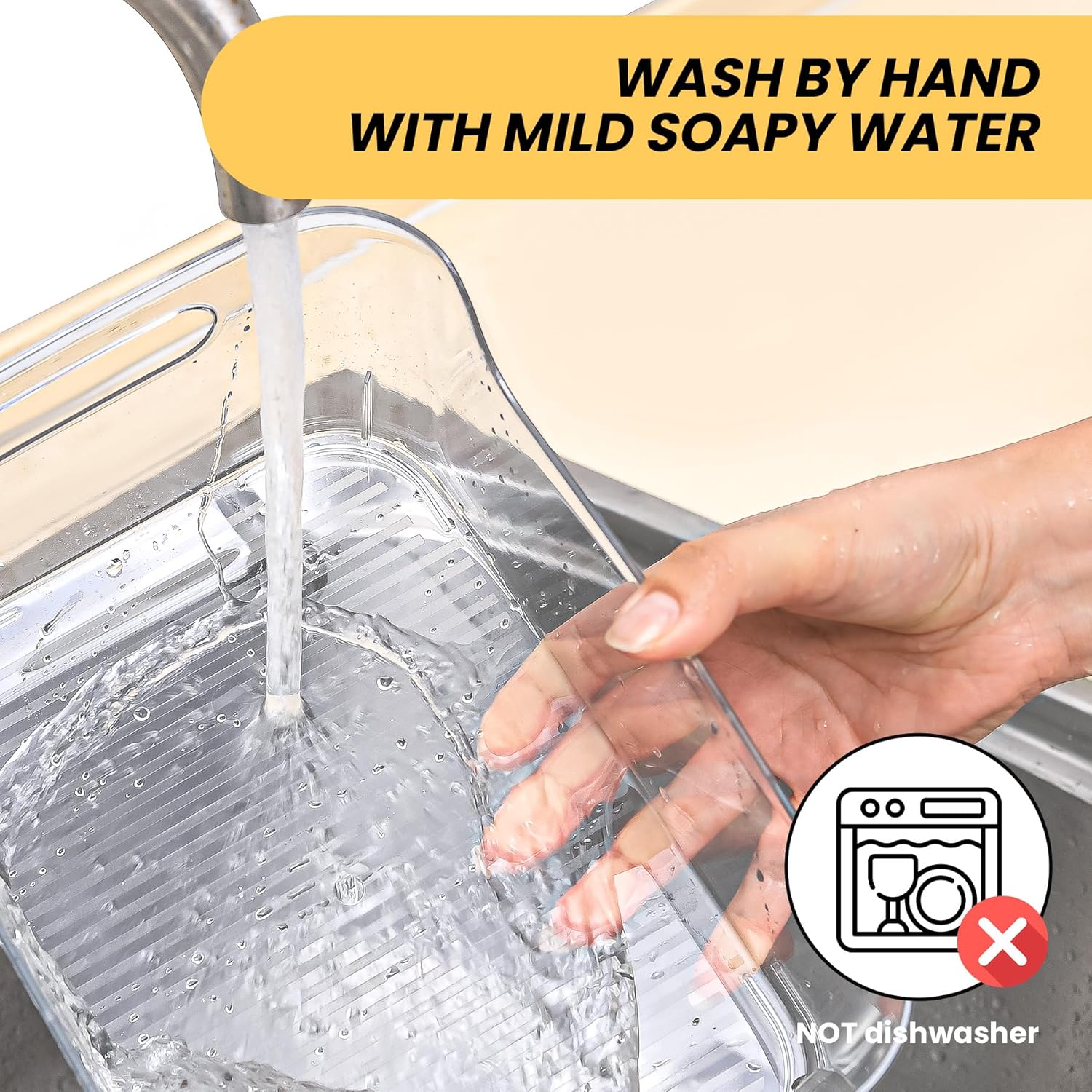 - Easy to Clean: The bins are easy to clean. Please clean by hand only with mild soap or a damp cloth and warm water. NOTING: Don't clean these storage bins in dishwasher.