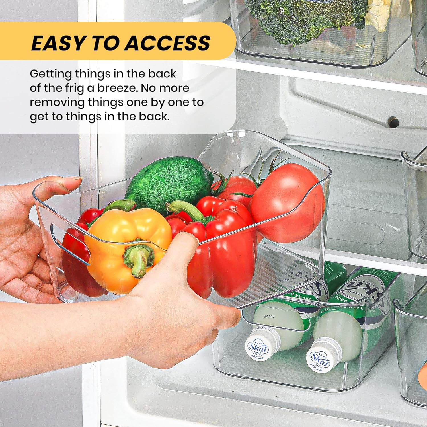 - Multi-Purpose Bins: Our clear organizer bins are great for home and office supplies for organization and storage. Conveniently store and organize spices, food, medicine, drinks, canned foods, snack and more.These plastic organizer bins are great for pantry, cabinet, refrigerator, freezer, bathroom, and other areas in your home or office.