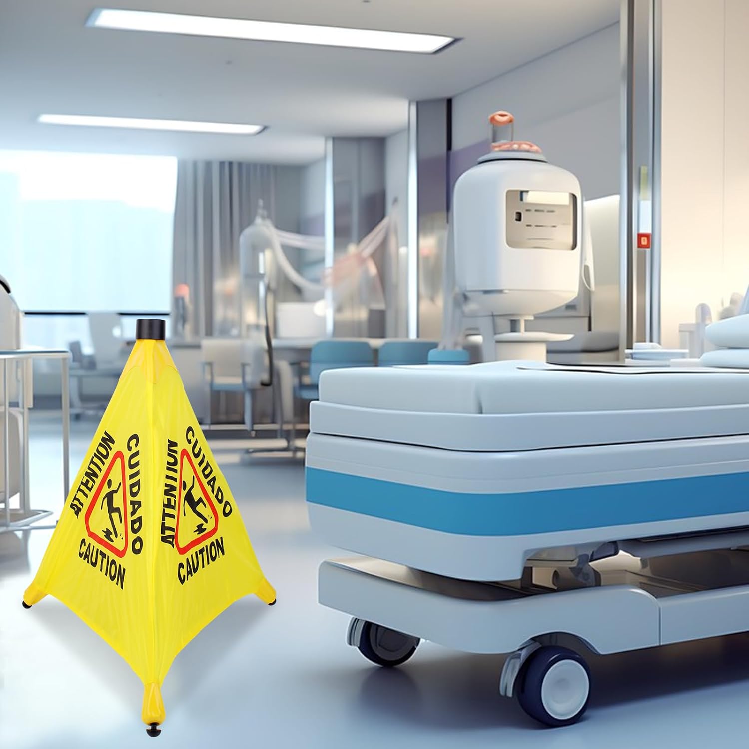 - Reliable Material: Our wet floor cones are made of nylon cloth, while the storage tube is constructed of plastic. The caution wet floor signs feature a pop-up triangle design, ensuring quick marking of dangerous conditions in any space. The printing is clear and bright, serving as an effective warning.
