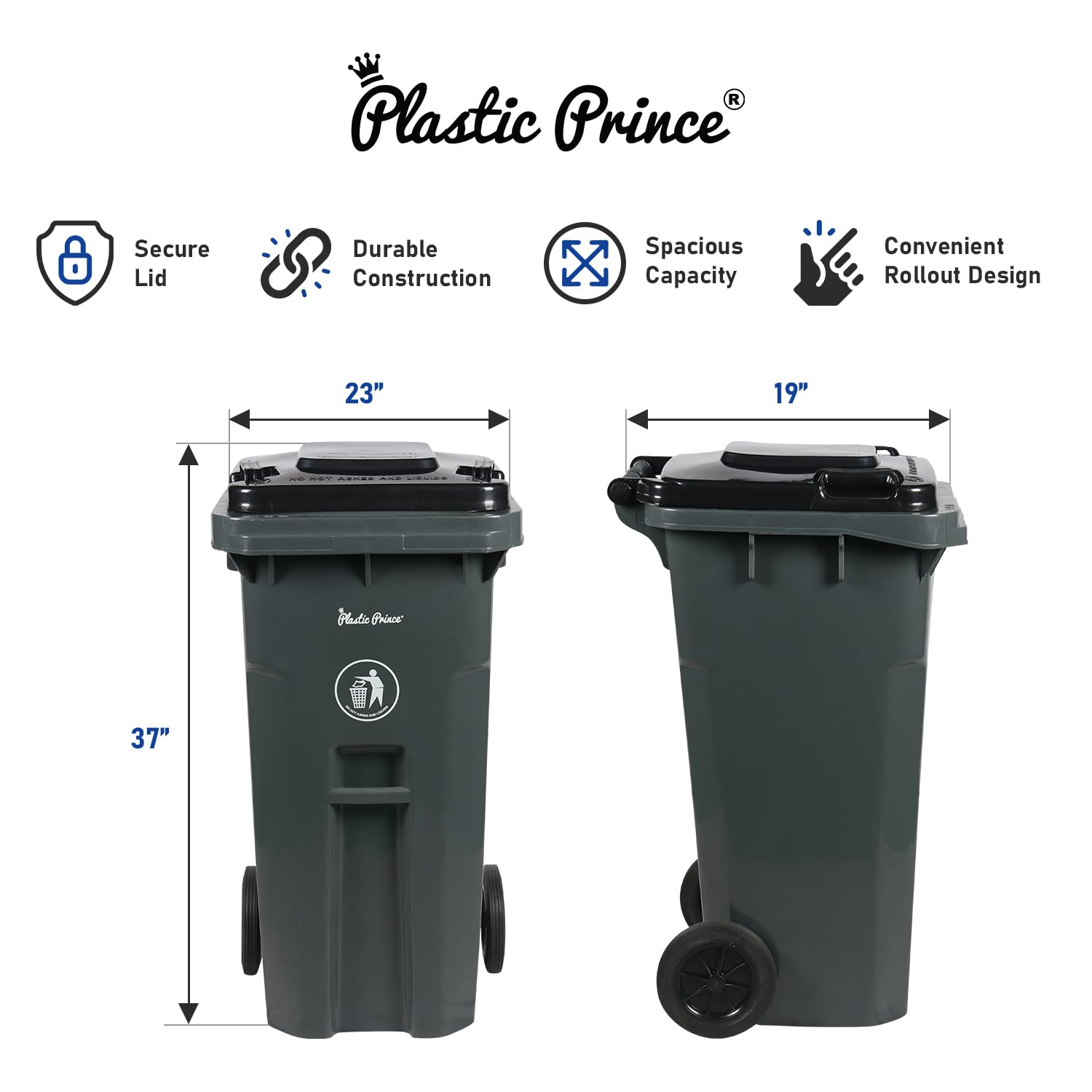 - Spacious Capacity: With a generous 32-gallon capacity, this outdoor garbage can with wheels provides ample room for storing waste, making it suitable for households, businesses, and outdoor events.