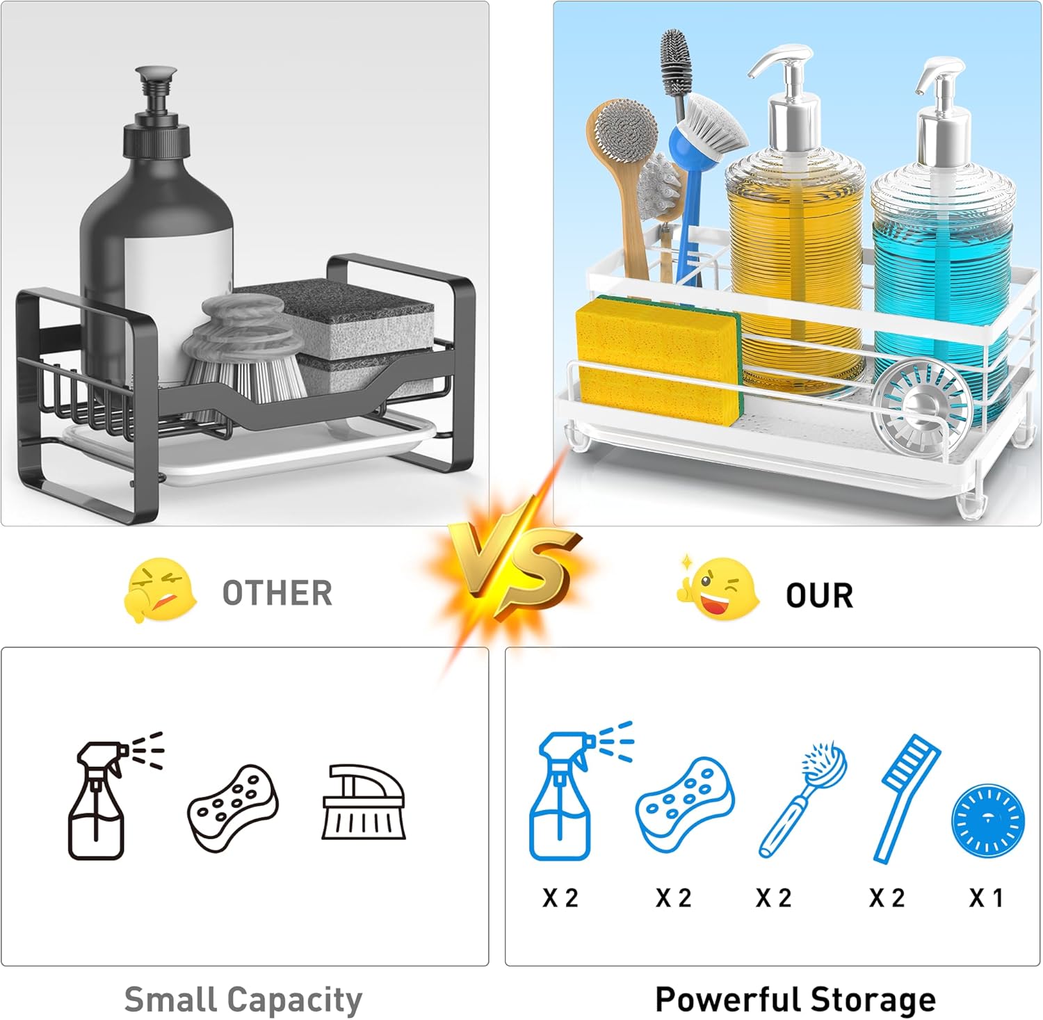 - 【MORE STORAGE SPACE 】Compared to other kitchen sink caddy CISILY sponge holder expands to 5.3 inches wide and 9.49 inches long, enhancing its kitchen organization function, and allowing flexible placement of sponges, dish soap, soap dispensers, brushes, sink plugs and more. Make the most of every inch of space and make your kitchen look cleaner.