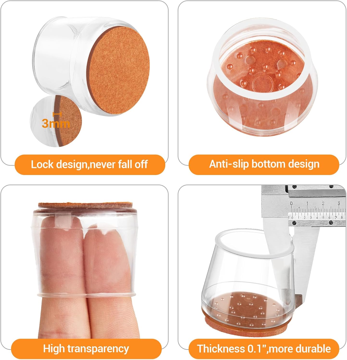 - UPGRADEED MATERIALS--Compared with the 1mm thick silica gel on the market, our silicone chair leg floor protectors use 3mm thick silicone,never falling apart ,more durable,more flexible ,won't turn discolor when stretched.The silica gel hold the chair firmly,and do not fall off .