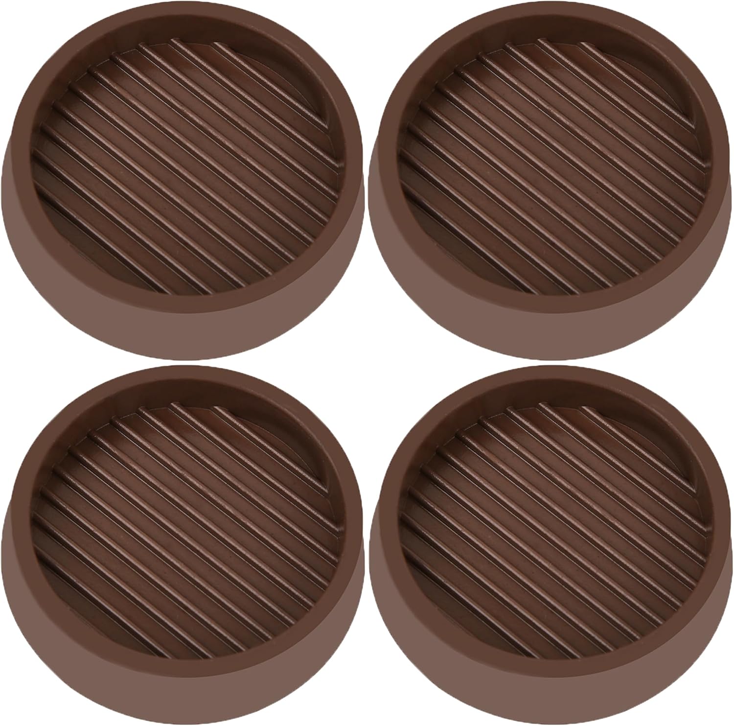 4X4 Round Rubber Caster Cups, Non Slip Furniture Pads, Anti-Slip Gripper, Anti Skid Furniture Feet, Anti Slide Floor Protector for Bed Couch Table Chair Stoppers (Brown, 4 Pack)