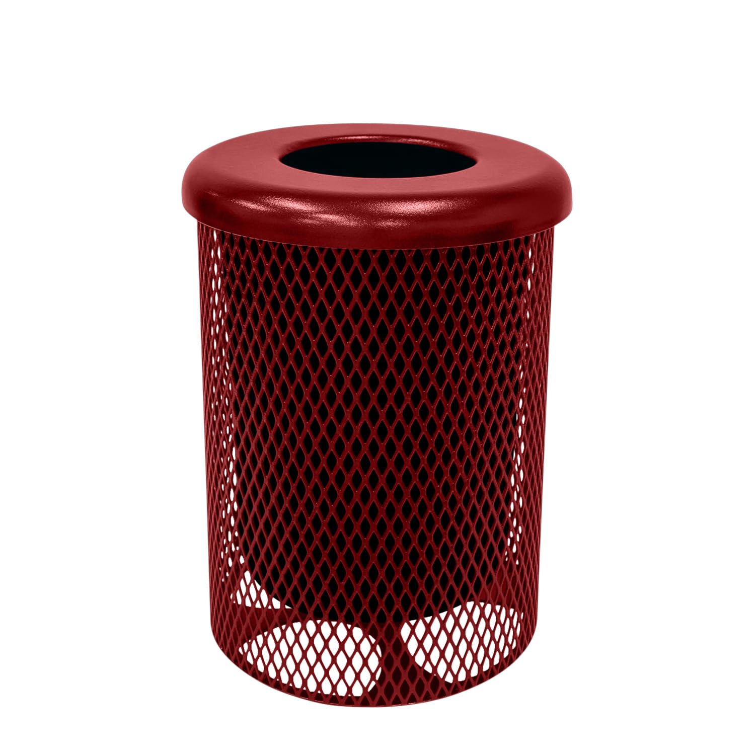 COATEDOUTDOORFURNITURE RFT-TXTBUR Heavy Duty 32 Gallon Round Trash Receptacle, Liner Included, Textured Burgundy with Flat Top, Made in America