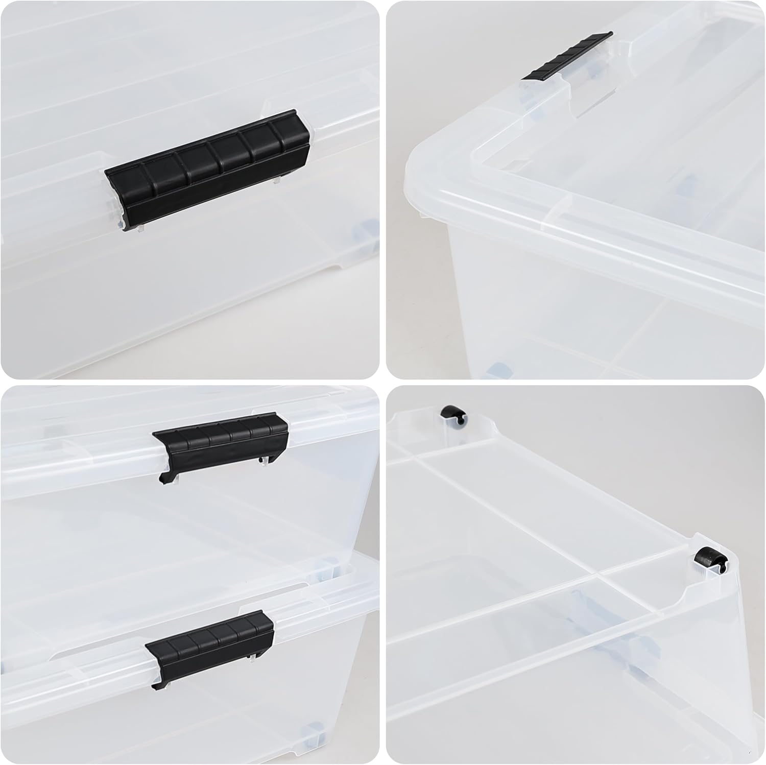 3-Pack 50 Quart Under the Bed Low Profile Storage Boxes, Large Under Bed Storage Bin with Easy Rolling Caster Wheels, Clear