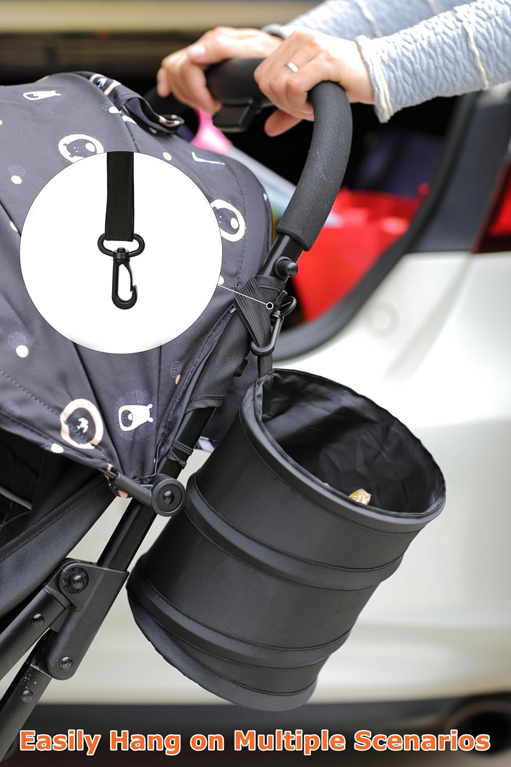- MULTIFUNCTIONAL USAGES - This collapsible trash can for car is not only a small car trash can but also be a storage bag to keep items such as cups, toys, and other accessories. Additionally, our car trash bin could also be used as a travel box keeping snacks in car, on camping or picnicking.