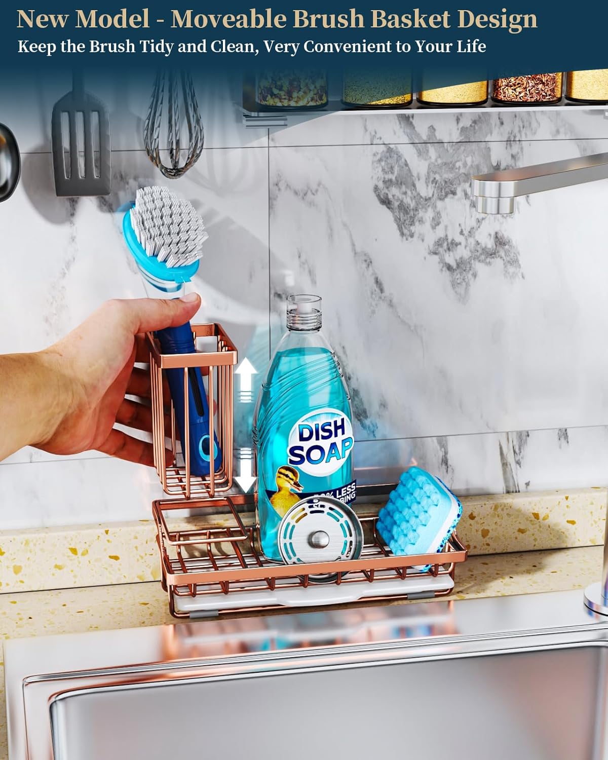 - [Sleek, Modern Aesthetics]: Elevate your kitchen's aesthetics with sink caddy. Our sponge caddy for kitchen sink boasts a sleek, modern exterior, complement any kitchen decor. The kitchen sink caddy is functional, can enhance the visual appeal of kitchen
