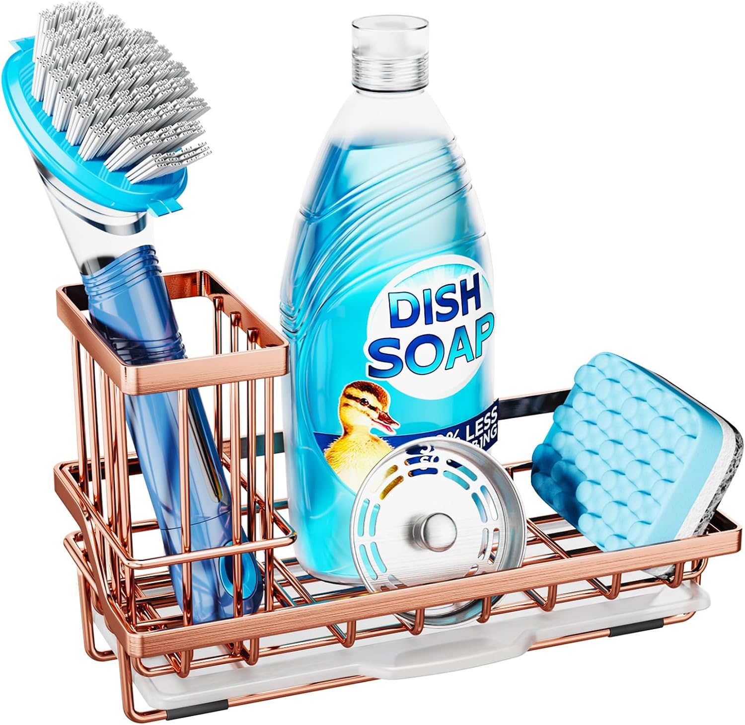 Consumest Sponge Holder for Kitchen Sink - Sink Caddy Kitchen Organizer with Removable Drip Tray for Countertop Dish Soap Dispenser Brush Storage Accessories 304 Stainless Steel, Rose Gold