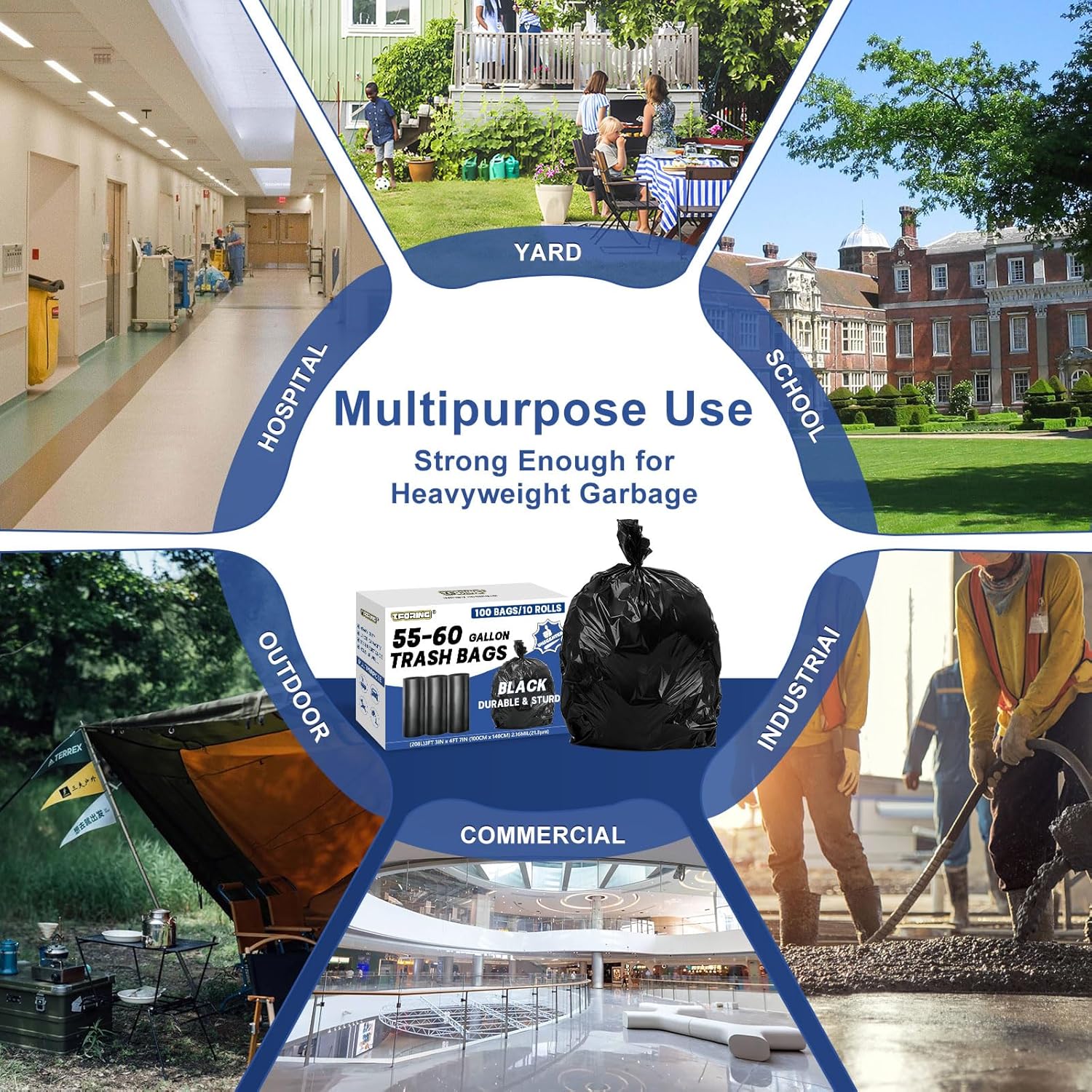 - 【HIGH QUANTITY】 If you’re looking for an inexpensive bag for household garbage that is sufficiently sturdy, T.FORING 55-60 gallon trash bags are a good compromise. The 2.1 Mil thick strong trash can liner is waterproofed to the contents and is ample and large enough for virtually all situations.