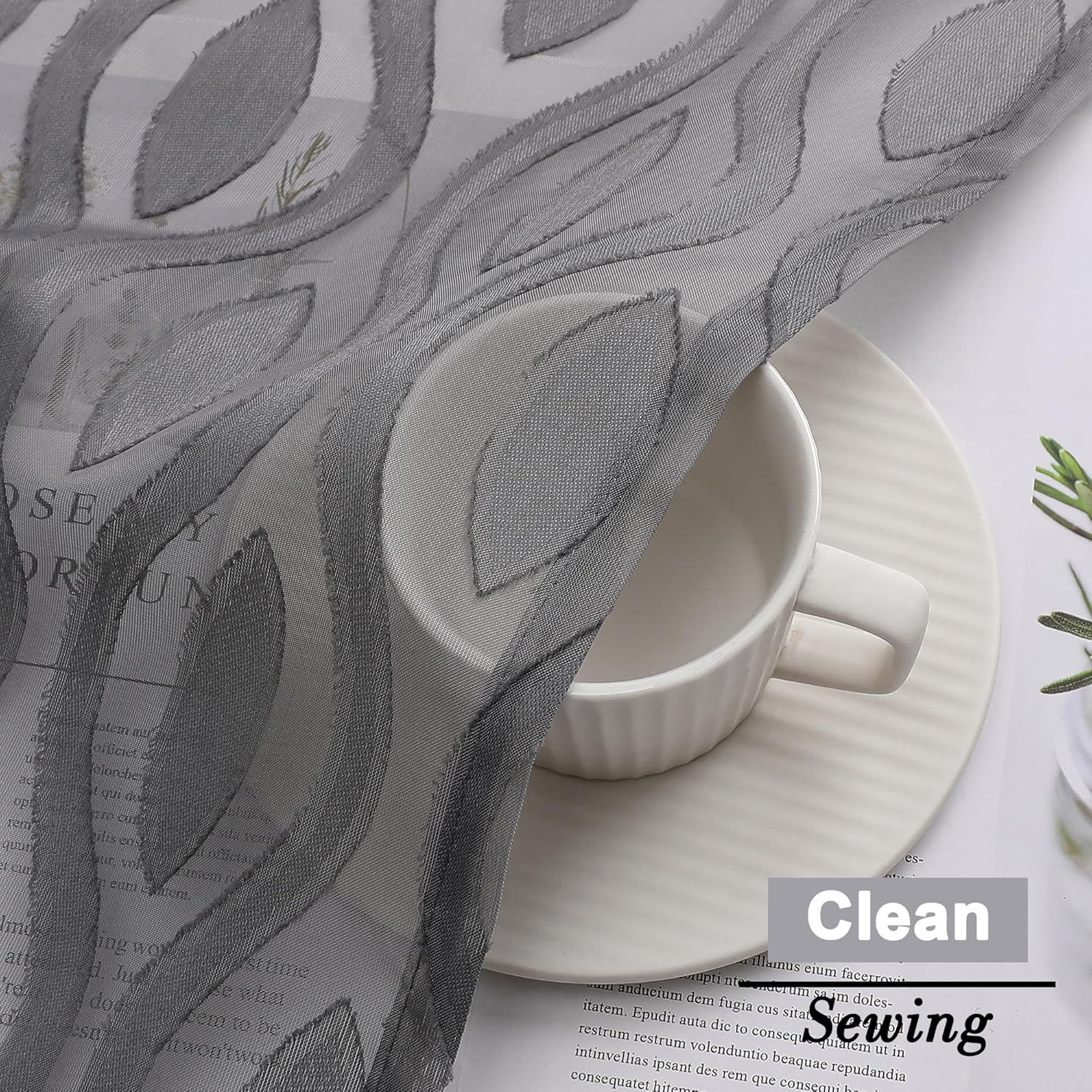 Aiyufeng Extra Long Grey Sheer Curtains 96 Inches Long for Bedroom 2 Panels Set, Farmhouse Wavy Line Light Filtering Clip Jacquard Solid Voile Living Room Curtains, Dual Rod Pocket, 40" Wx96 L Inches