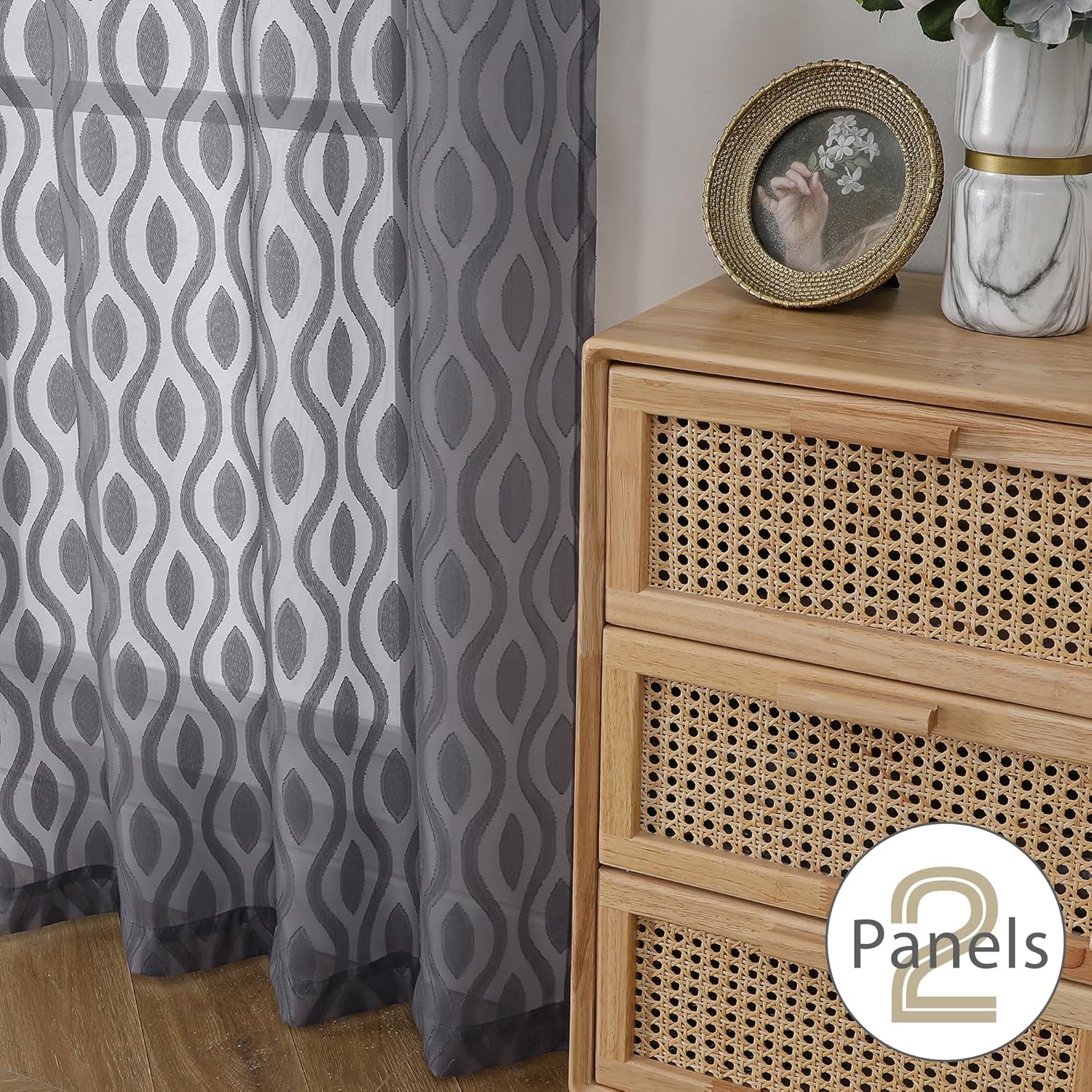 Aiyufeng Charcoal Grey Sheer Curtains 84 Inches Long 2 Panels, Solid Airy Light Filtering Window Treatments for Bedroom Living Room, Modern Wavy Line Rod Pocket Curtains, Total 80 inches Width