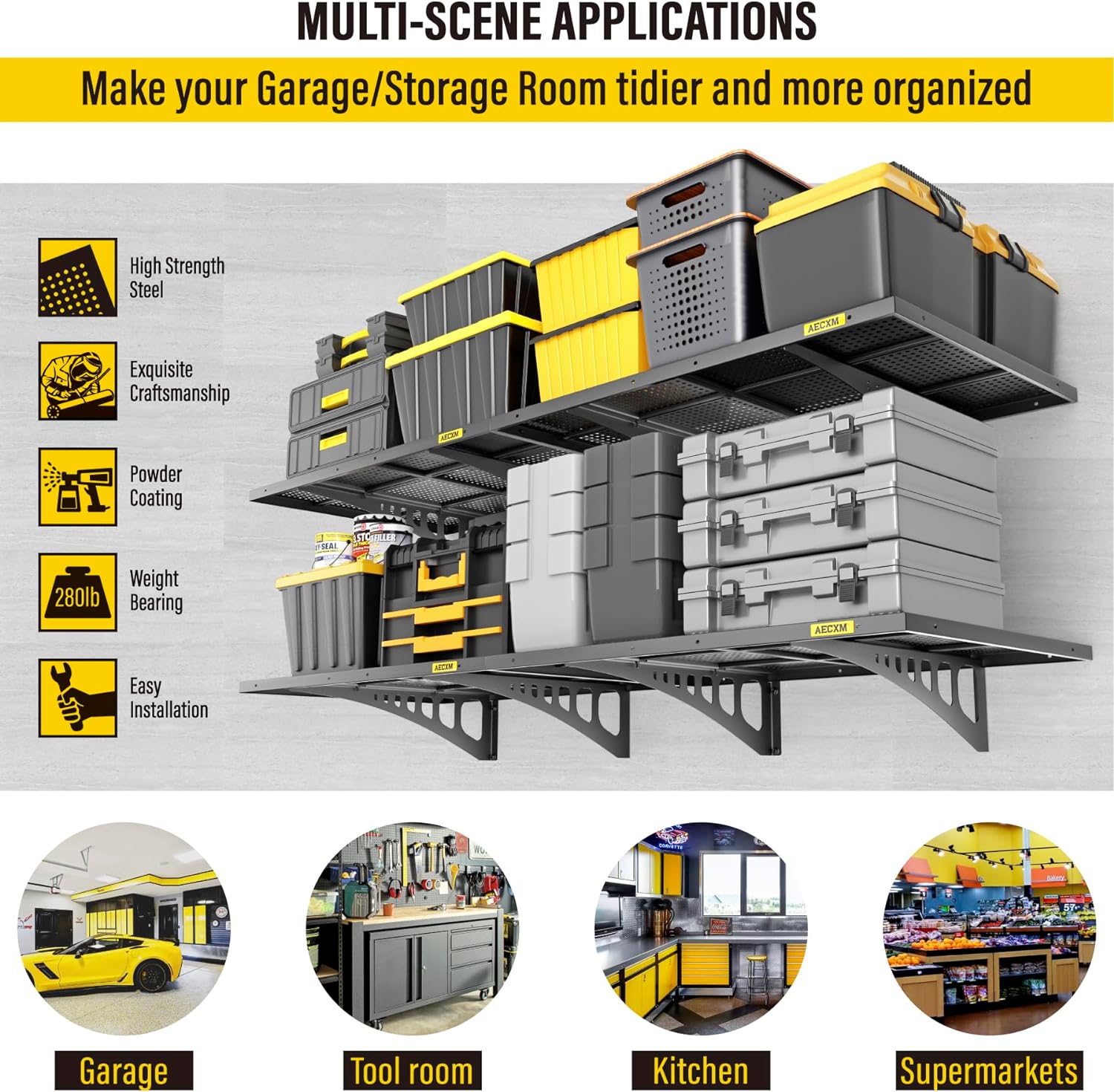 - Premium Craftsmanship: This garage wall shelving is crafted from a single steel sheet, precision-stamped and folded for strength. Unique high-density hole design enhances functionality while delivering a sleek, modern aesthetic