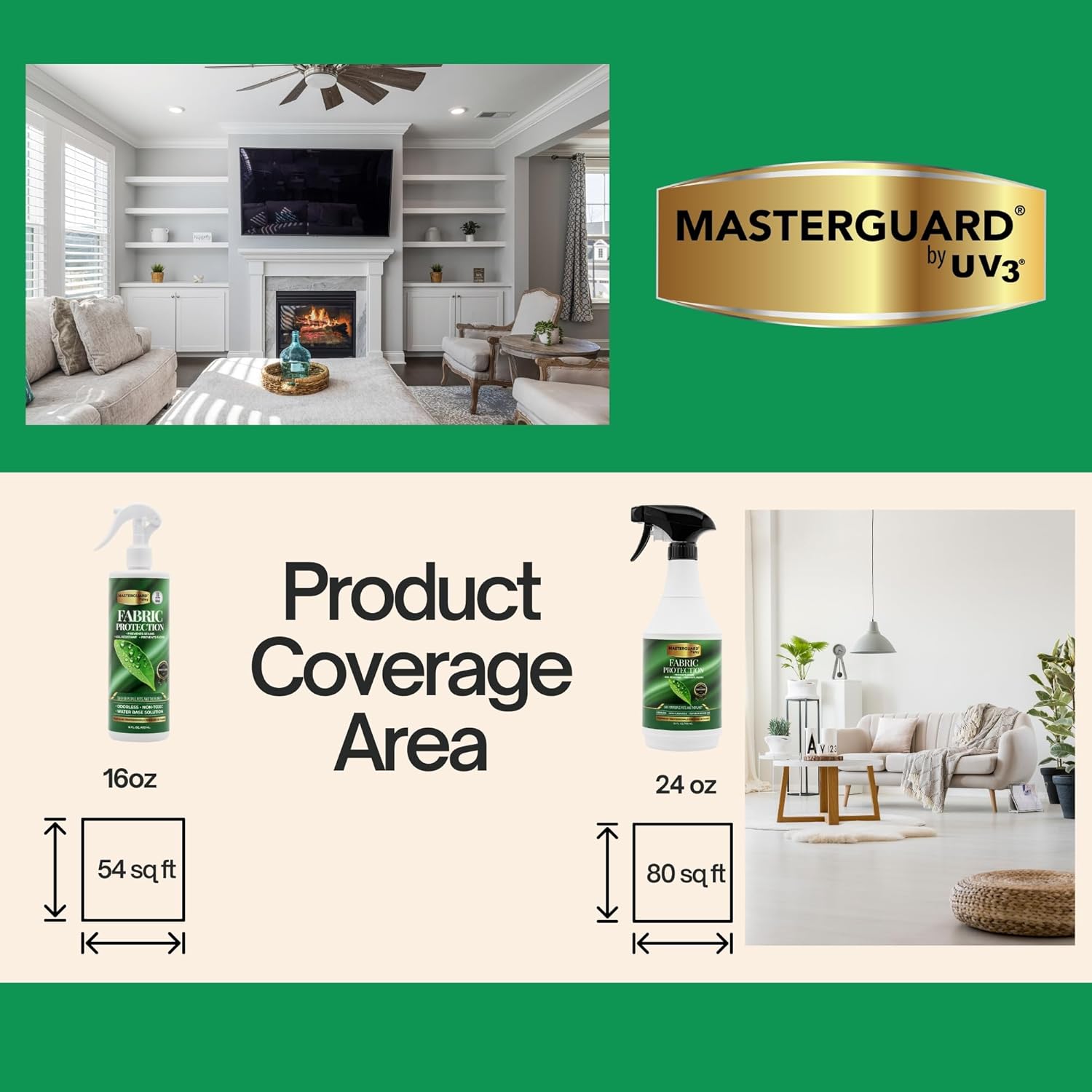 - Ultimate Fabric Protection: Guards against spills, stains, dirt, and UV rays to keep your fabrics looking pristine and new for longer periods. Ideal for fabric stain protection and upholstery protection. Masterguard creates a layer of protection that prevents dust from causing additional wear and increases the strength and life of the fabric