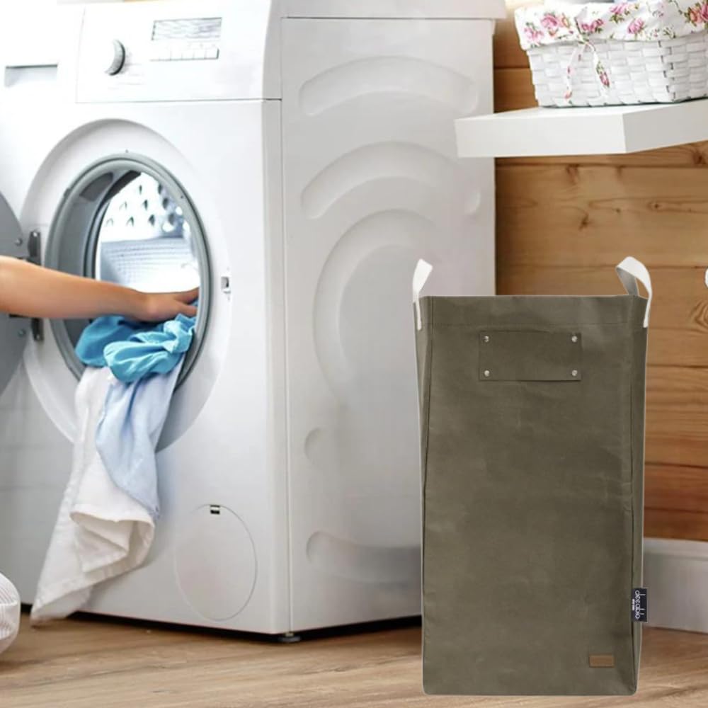 Deeablo New York - Sustainable Reusable Indoor Recycling Bin for Kitchen, Multipurpose Recycle Bin, Large Recycling Bins for Home, Washable Paper Bag for Recycling (Olive)