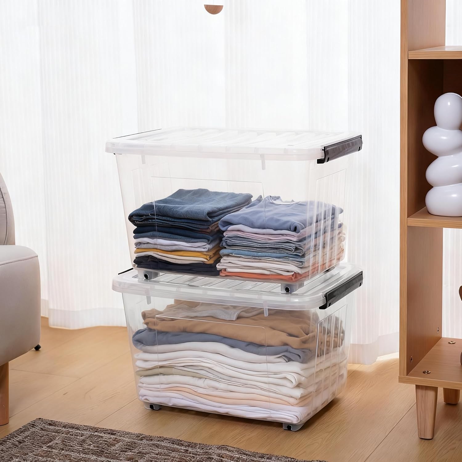 Citylife 54 QT Clear Plastic Storage Bins with Lids Stackable and Nestable Storage Boxes with Lids Large Plastic Storage Containers for Garage, Closet, Kitchen, 4 Packs