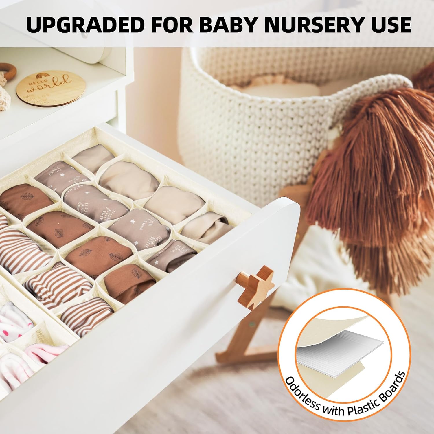 - ăSOLVE YOUR QUALITY CONCERNSăMaybe you noticed a strange smell in your drawers? Many organizer bins are made of cardboard, causing odors. Our Criusia drawer organizers use durable plastic boards wrapped in cationic cloth, making them 10 times more durable than non-woven fabric. They are odorless, ideal for baby nursery organization, and washable for a longer lifespan.
