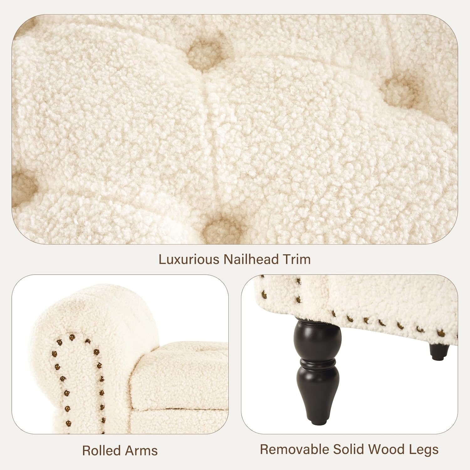 - [Mid-century Modern Bench] -Inspired by modern mid-century design concept, our upholstered bedroom storage bench end of bed features a foam-padded seat with high-quality faux fur. Rolled arms, button tufts and a luxurious nail head trim offer a nice finishing touch.