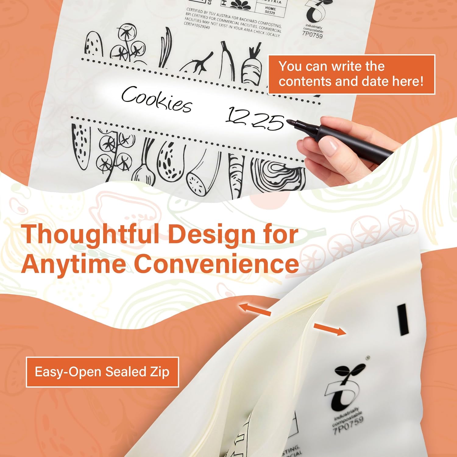 - 💕【Durable, Eco-friendly, and Safe】The food storage bags lock in freshness with a secure, leak-proof seal. Compostable, BPA-free, and non-toxic, they’re ideal for daily use and freezer storage. Easy to use and tough enough for a variety of foods, they provide a reliable, eco-conscious solution for all your storage needs.