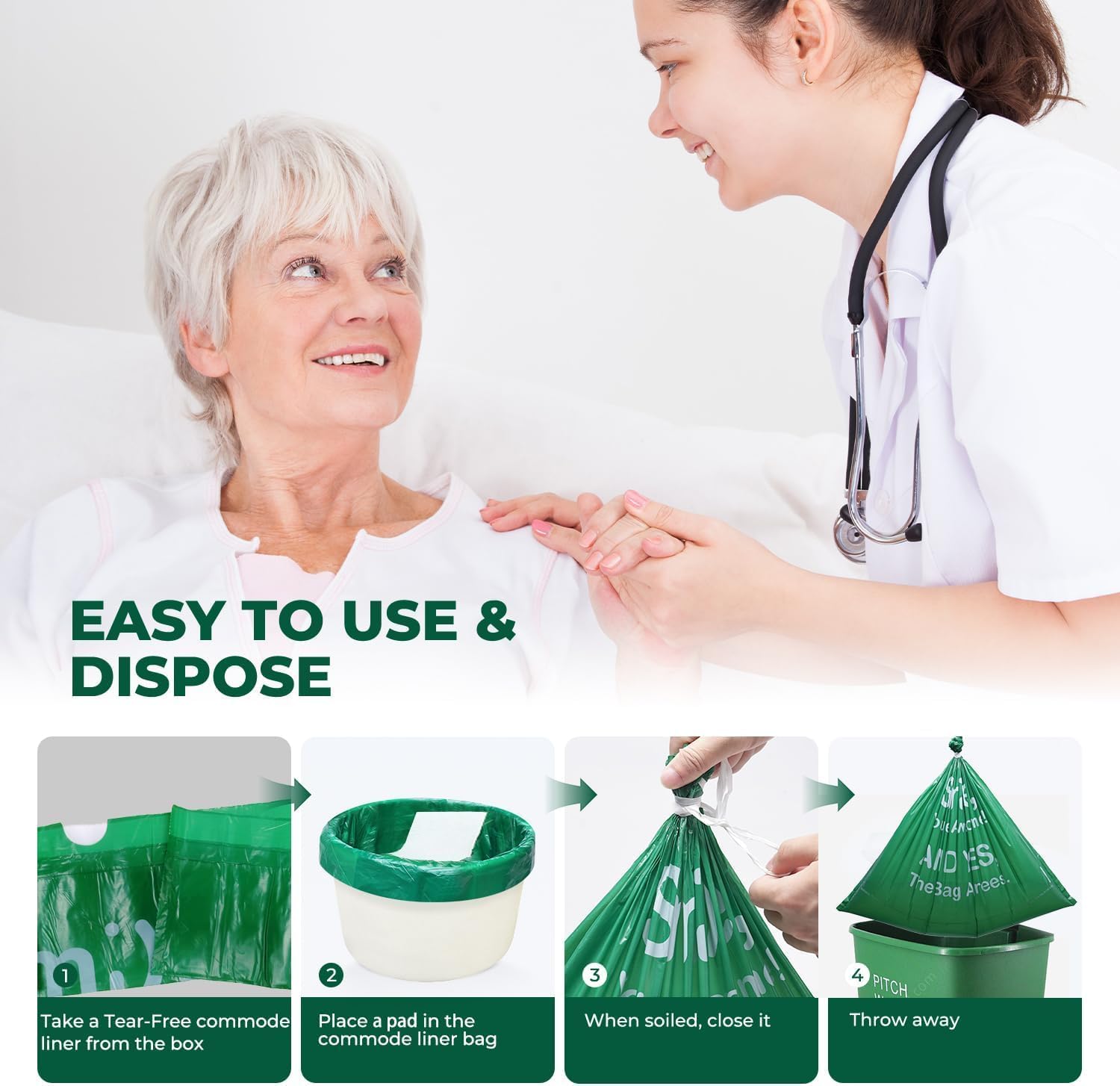 - EASY TO USE AND CLEAN: Drawstring design makes it easy to remove the commode liner with the absorbent pad, tie the commode bag to eliminate odors and discard it like a garbage bag, simplifying the cleaning process